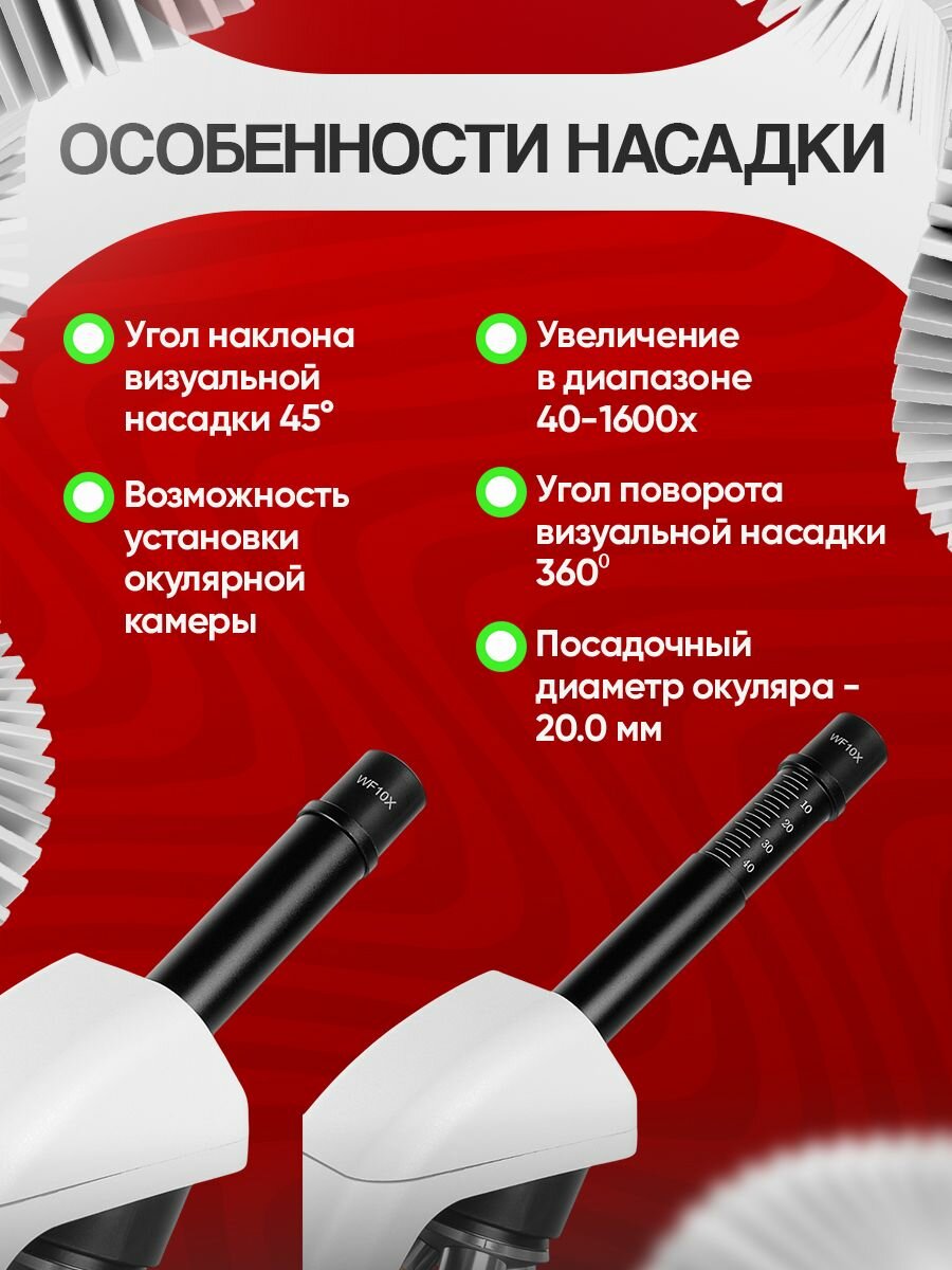 | Тип насадки микроскопа | Монокулярная |