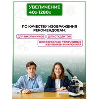 2. Увеличение от 40 до 1280 крат делает оптический инструмент подходящим для взрослых и школьников, готовящихся к экзаменам по ОГЭ, для научных исследований и домашних опытов, получения реальных практических навыков в области медицины и биологии, науки.