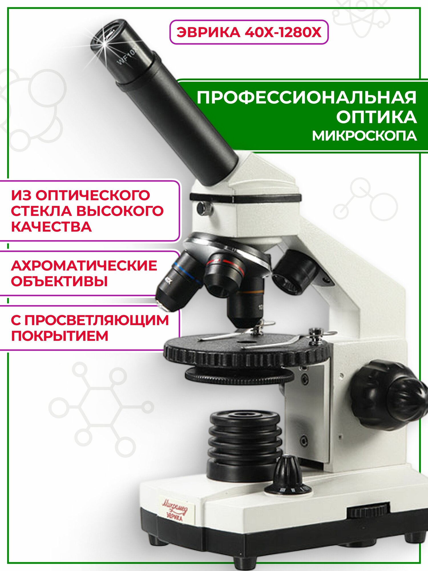 3. Объективы ахроматы в комплекте с окулярами обеспечивают высокое качество оптики, позволяя получить качественные яркие изображения микропрепаратов на данный световой микроскоп.