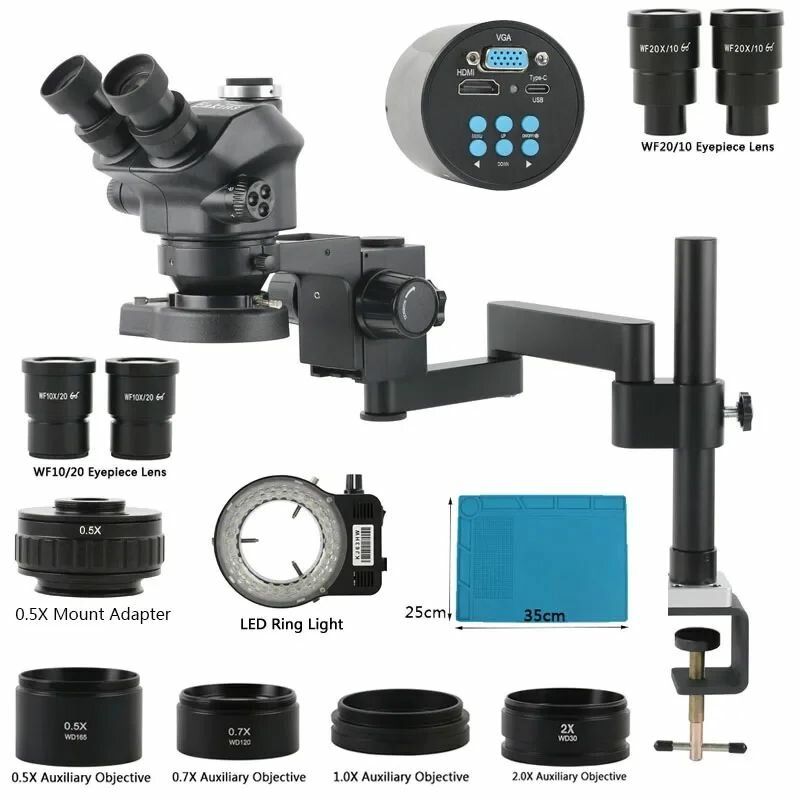 Купить Микроскоп стерео тринокулярный 3.5X-200X с камерой 1080P 48MP 4K 2K HDMI USB TF и складной базой Тип расширения с доставкой по всей России.