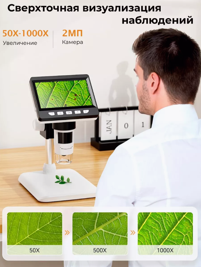 Купить Микроскоп/ Микроскоп цифровой/ Микроскоп портативный биологический/ Микроскоп с экраном и светодиодной подсветкой Inskam с доставкой по всей России.