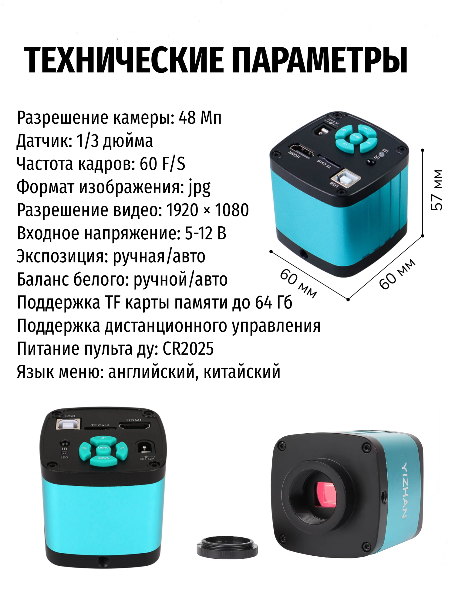 - Вывод изображения: 4K HDMI (1920 × 1080, 60 F/S)