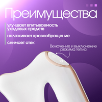 Лимфодренажный массажер для лифтинга и омоложения. Идеален для ежедневных процедур. Убирает утренние отеки, освежает лицо, разогревает кожу, улучшает кровообращение и лимфоток, расслабляет шею. Способствует выработке коллагена, ускоренному и глубокому вписыванию кремов, гелей и косметических масок. Уникальный беспроводной аппарат, быстро заряжается от USB, можно использовать во время утренних процедур, в дороге, в путешествиях, в самолете. Массажер легкий и бесшумный имеет 3 режима вибрации, естественный температурный режим и разогревающий режим до 42°С для глубокого расслабления. Так же рекомендуется использовать для проработки мышц и избавления от целлюлита вместе с косметическим средством. Как использовать: Удерживайте нижнюю кнопку питания, чтобы включить устройство. Нажмите кнопку «Вниз», чтобы переключаться между тремя различными режимами. Первый режим (синий цвет) - самый низкий и самый щадящий вариант. Второй режим (зеленый цвет) - средний и имеет более высокую частоту вибрации. Третий режим (оранжевый цвет) имеет самую высокую частоту вибрации, а также небольшой микроток. Для того, чтобы выключить устройство, удерживайте нижнюю кнопку питания. Номинальное напряжение: 5 В. Номинальная мощность: 1,2 Вт. Емкость аккумулятора: 2000 мА·ч. Время зарядки: около 5 часов. Время использования: около 2 часов непрерывного использования. Температура массажа: 45°. Длина сетевого шнура: 46 см.