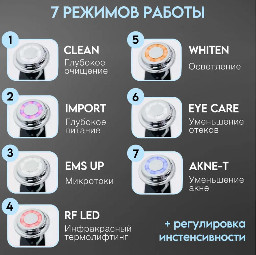 Глубокая очистка, горячий и холодный режимы, EMS терапия, увлажнение кожи и режим метаболизма коллагена - все это делает массажер Kattami многофункциональным и эффективным инструментом для ухода за кожей.