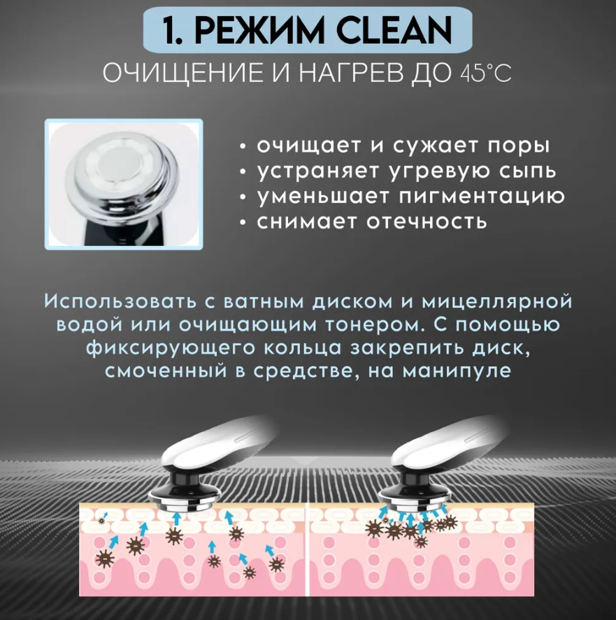 Вибромассажер помогает удалить морщины, предотвращает отечность и отбеливает кожу, а также удаляет черные точки.
