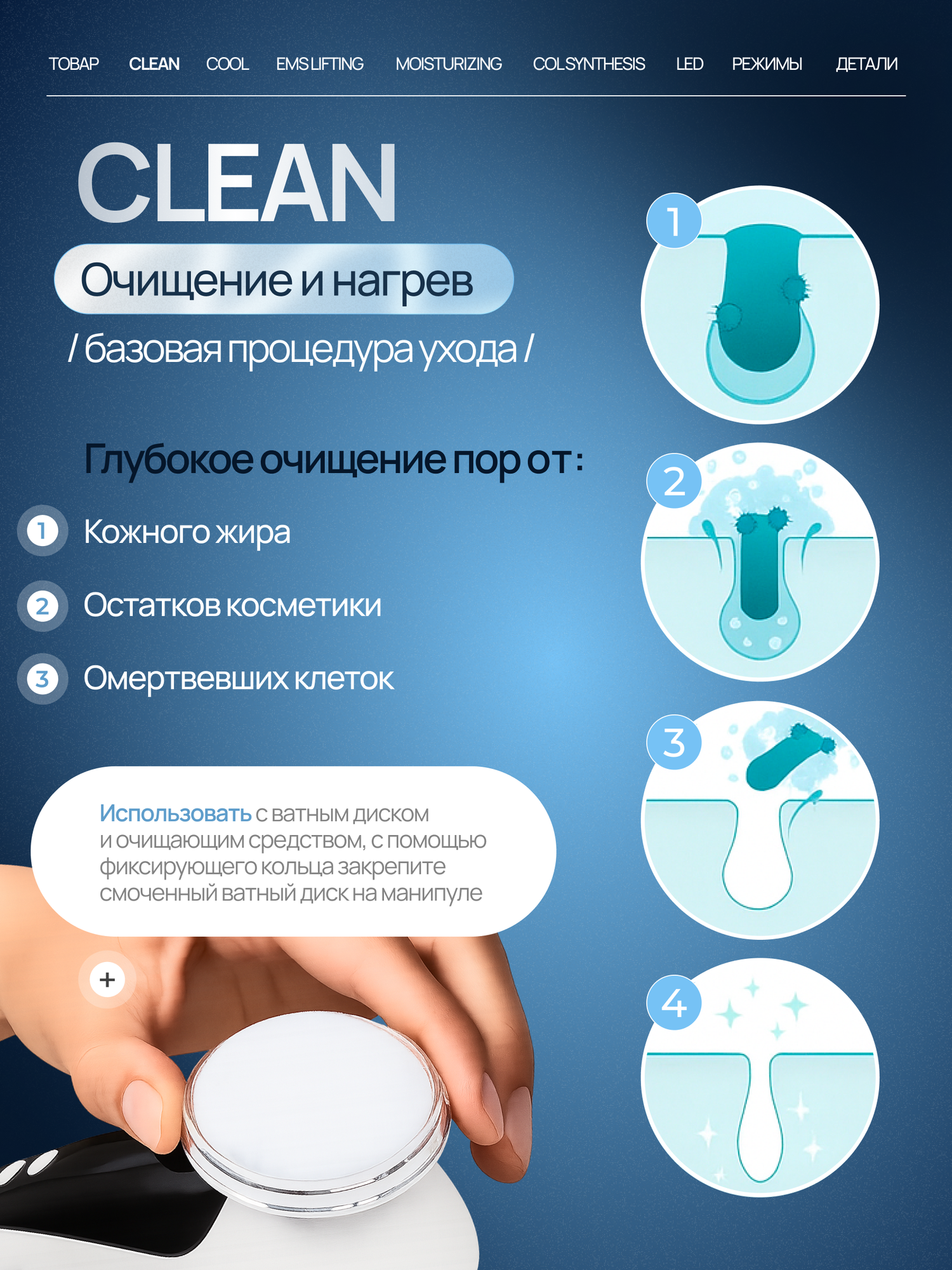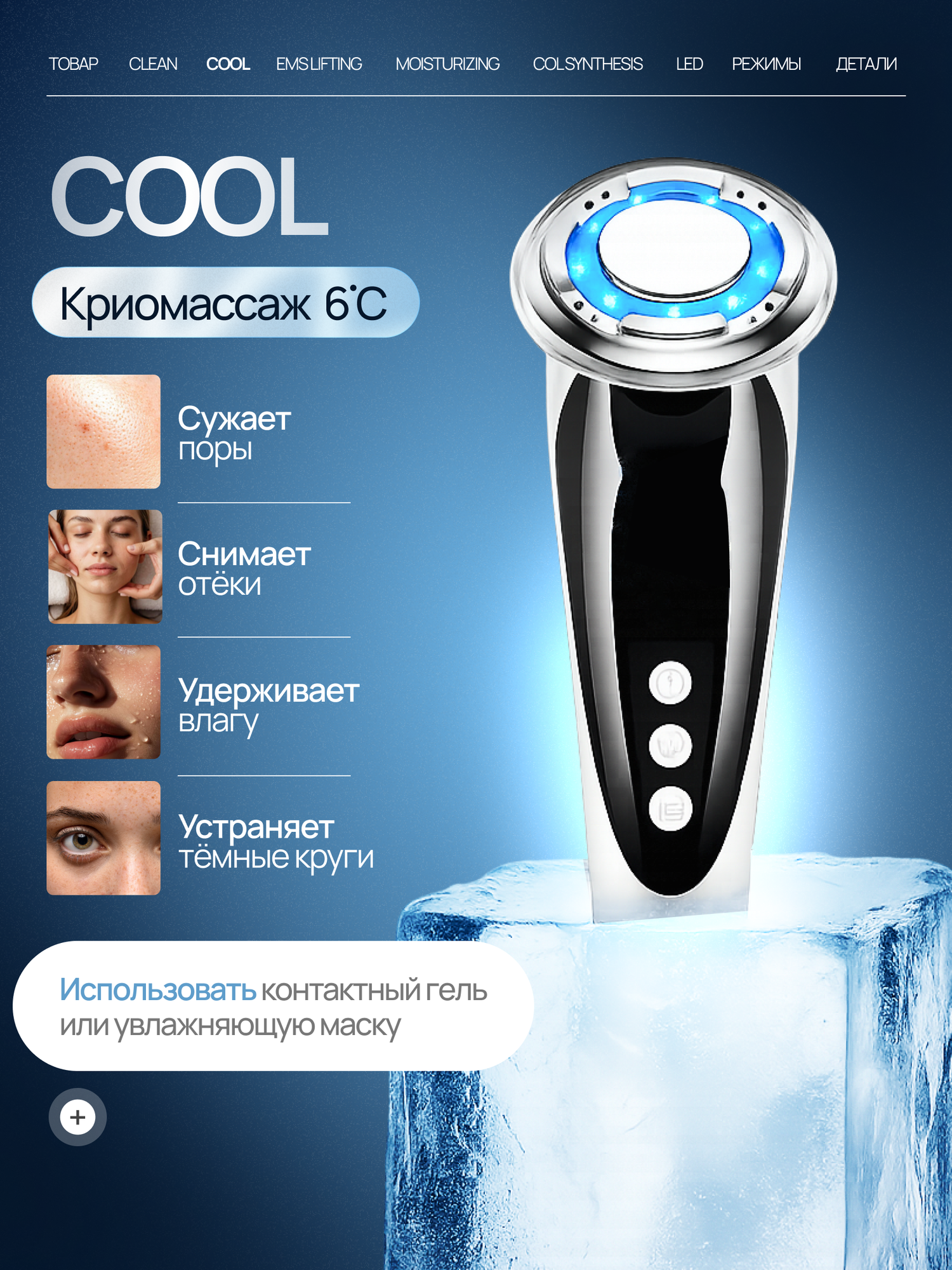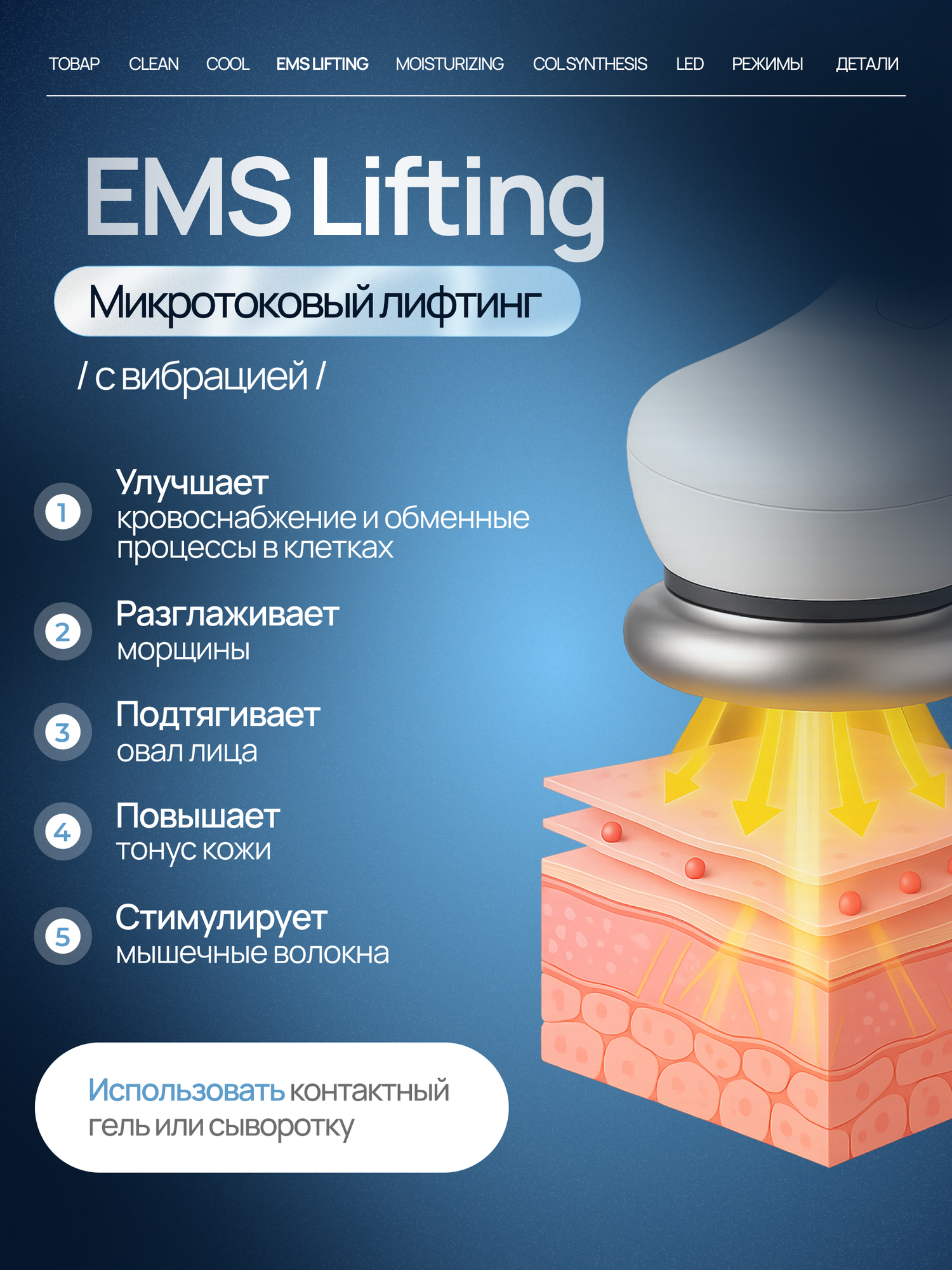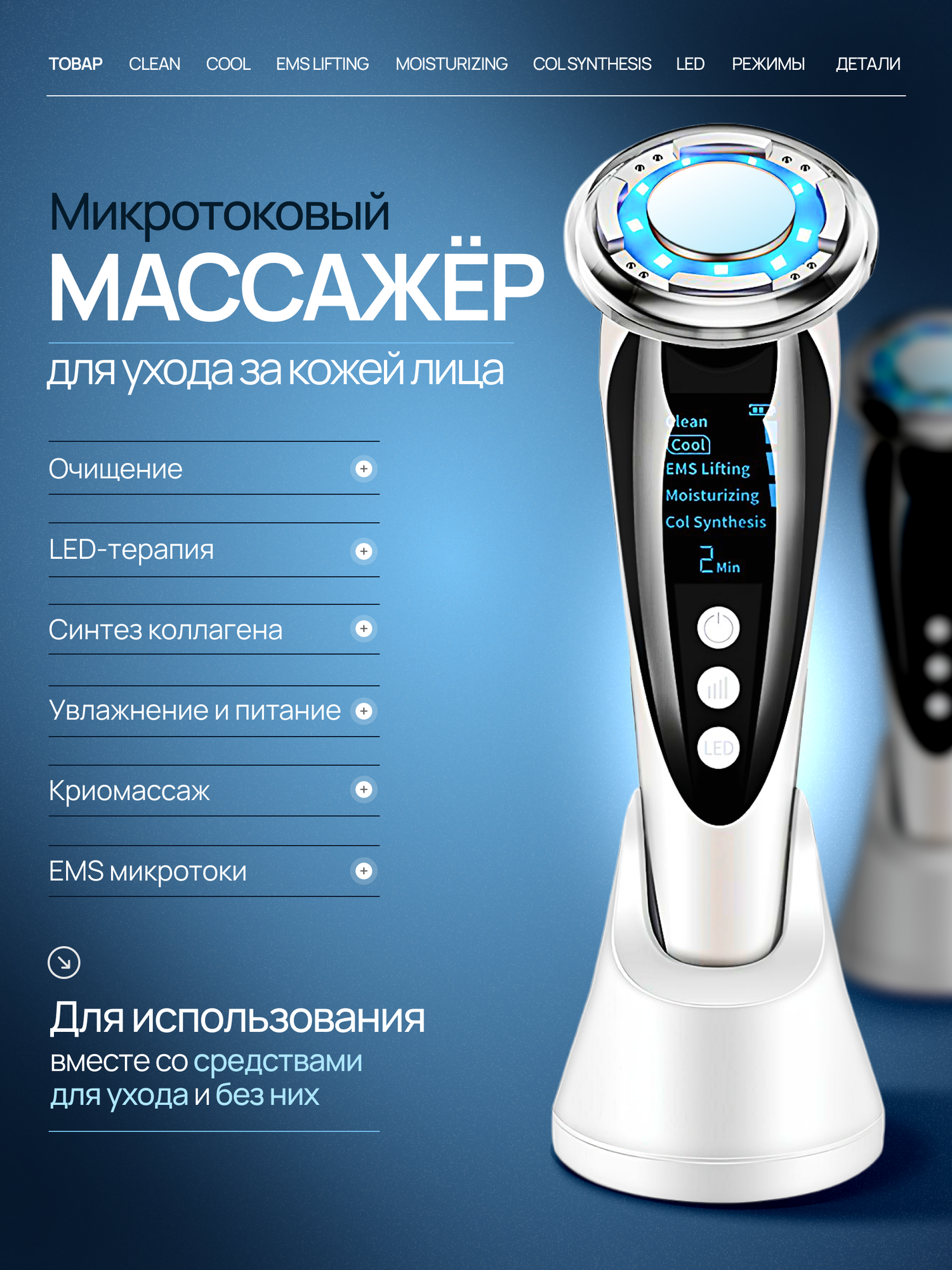 Купить Микротоковый массажёр для лица, EMS микротоки, LED, криомассаж, коллаген, профессиональный аппарат для ухода дома с доставкой по всей России.