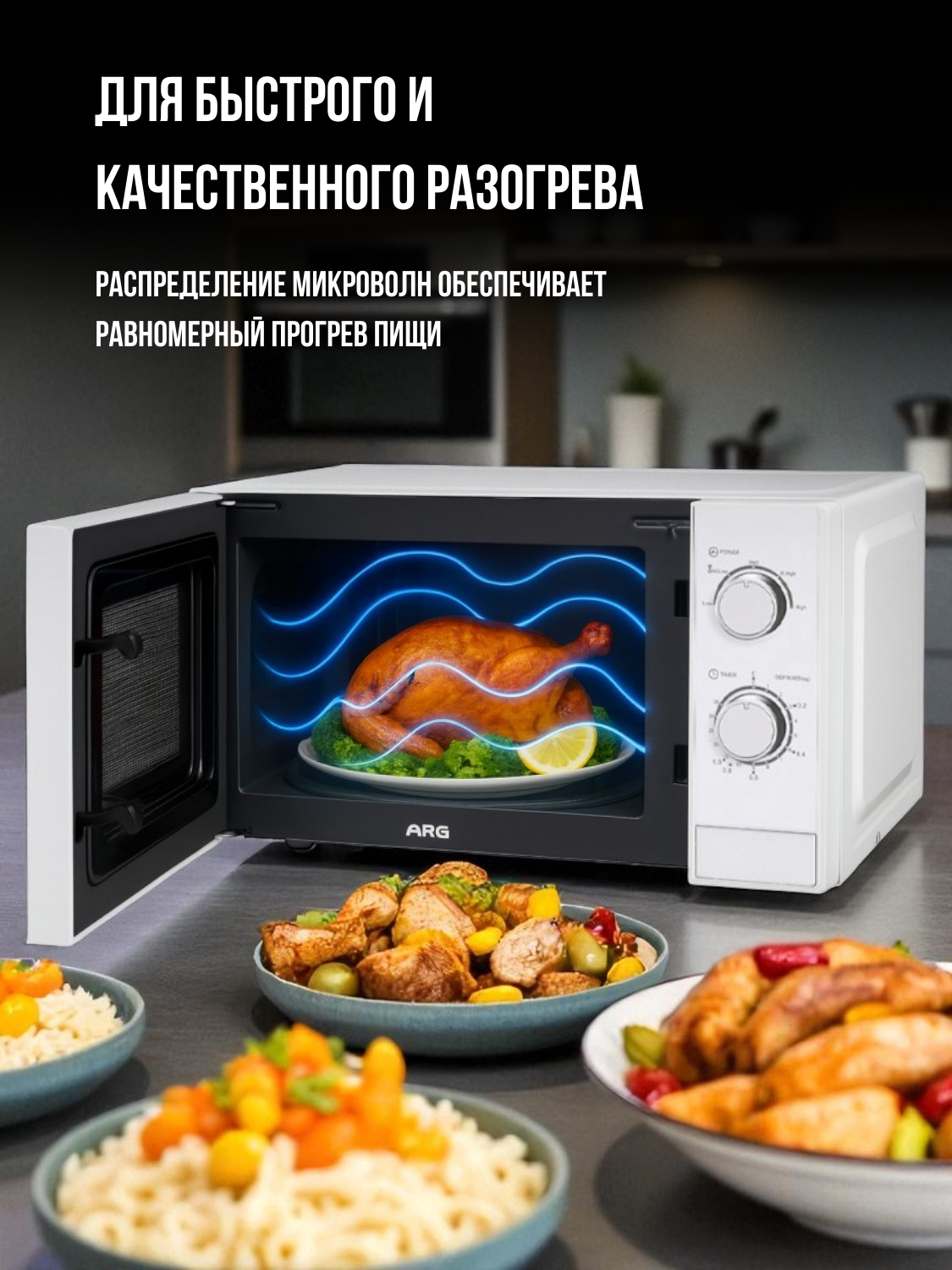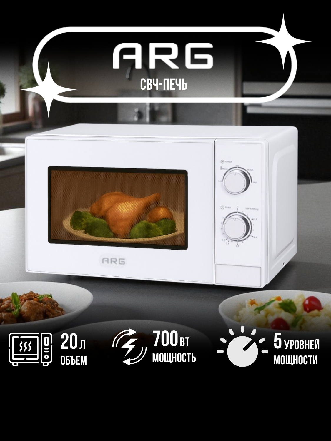 Купить Микроволновая печь ARG MM720CBU(8U), 20л, 700 Вт, 5 режимов, авторазморозка, отсрочка старта, защита от детей, белый с доставкой по всей России.