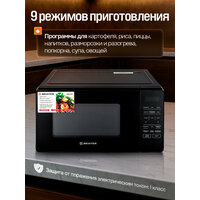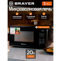 Микроволновая печь BRAYER BR2505, 700Вт, 20л, 9 режимов, LED-дисплей, 11 уровней мощности, часы. разморозка, черная
