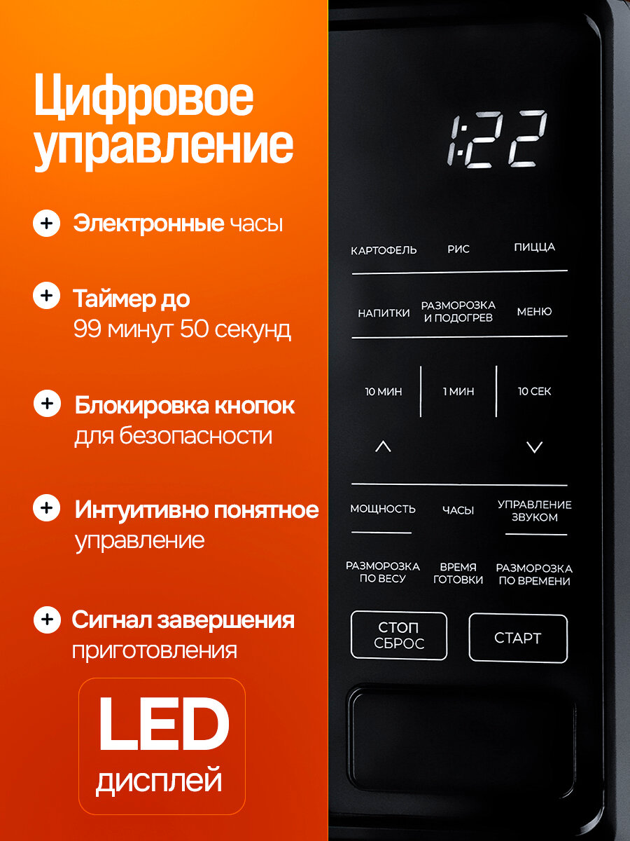 Микроволновая печь BRAYER BR2505, 700Вт, 20л, 9 режимов, LED-дисплей, 11 уровней мощности, часы. разморозка, черная: сравнение цен, характеристики, фото, актуальное наличие и цены.