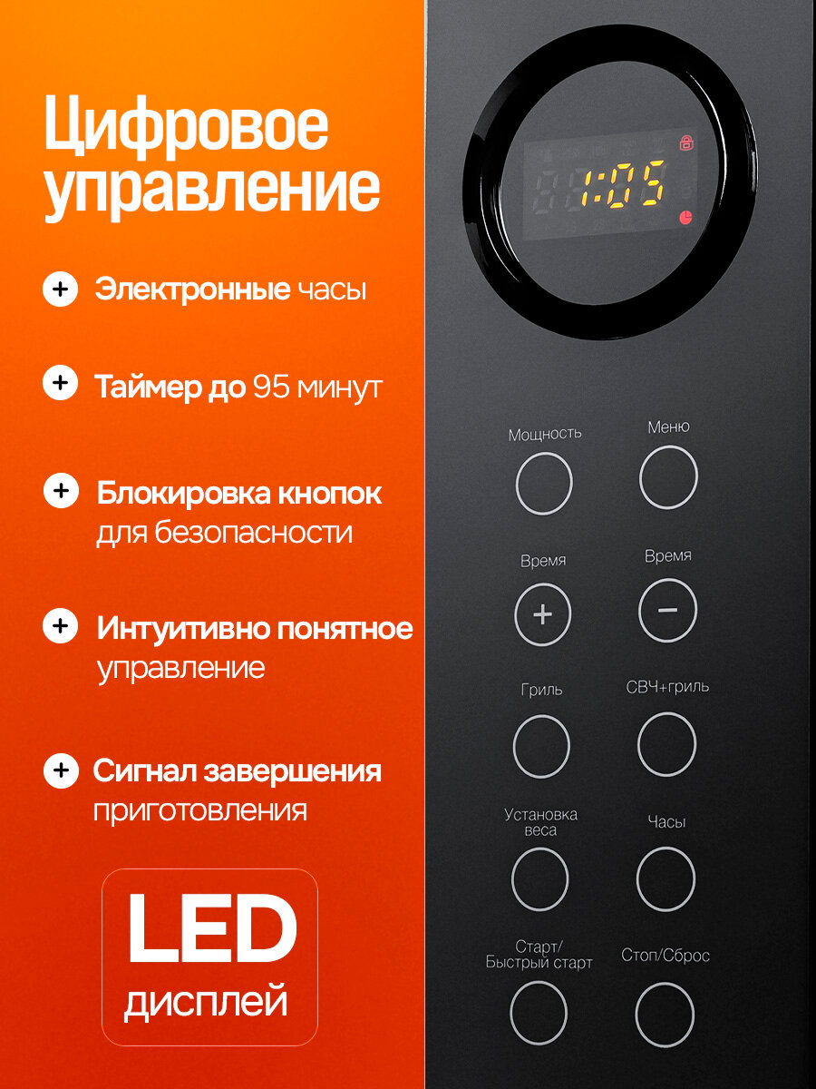 | Режимы работы | гриль, микроволны + гриль, микроволны + конвекция, разморозка |
