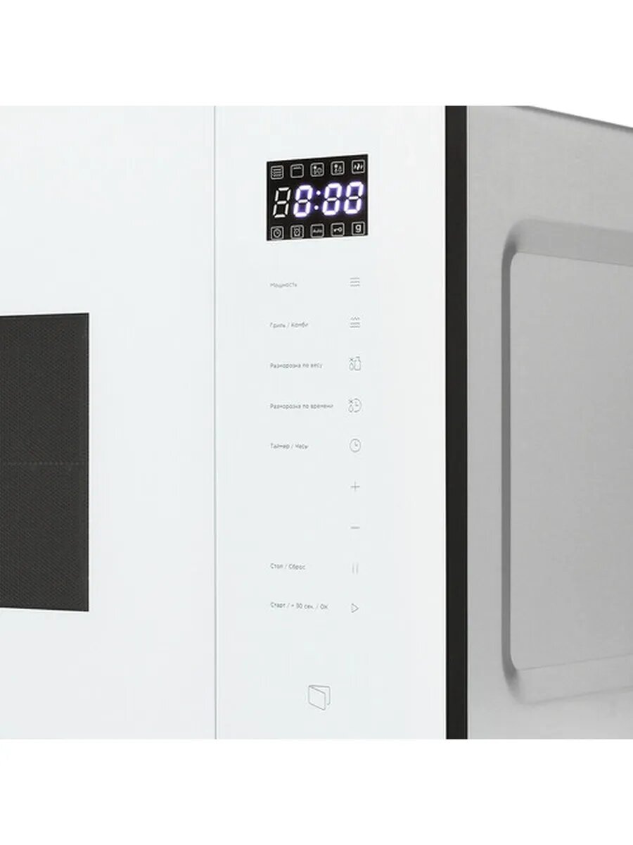 Встраиваемая микроволновая печь Eigen BI-MW925S обеспечивает равномерное воздействие микроволн для быстрого разогрева и приготовления. Она оборудована камерой объемом 25 л со стенками из нержавеющей стали, которые отличаются стойкостью к повреждениям и практичностью в уходе. Кварцевый гриль гарантирует сочные внутри продукты с золотистой корочкой. Для ручного и автоматического размораживания предусмотрены отдельные программы. Микроволновая печь Eigen BI-MW925S оборудована сенсорной панелью управления с дисплеем. Фронтальная сторона выполнена из прочного стекла белого цвета. Гладкая поверхность без труда очищается от следов пальцев и прочих загрязнений. Таймер позволяет программировать время приготовления до 95 минут. В комплекте предусмотрены стеклянный поворотный стол, решетка-гриль и ручка-присоска.