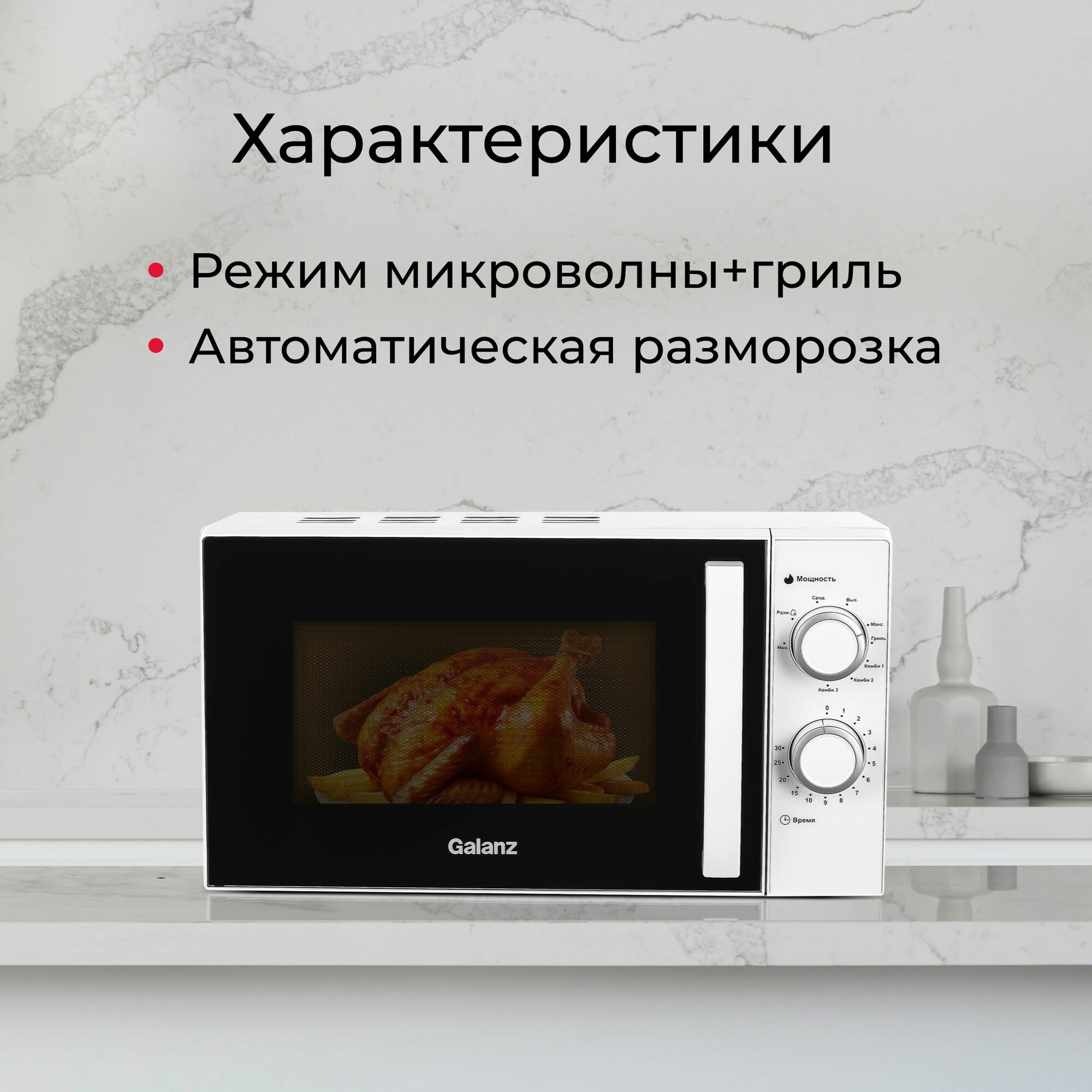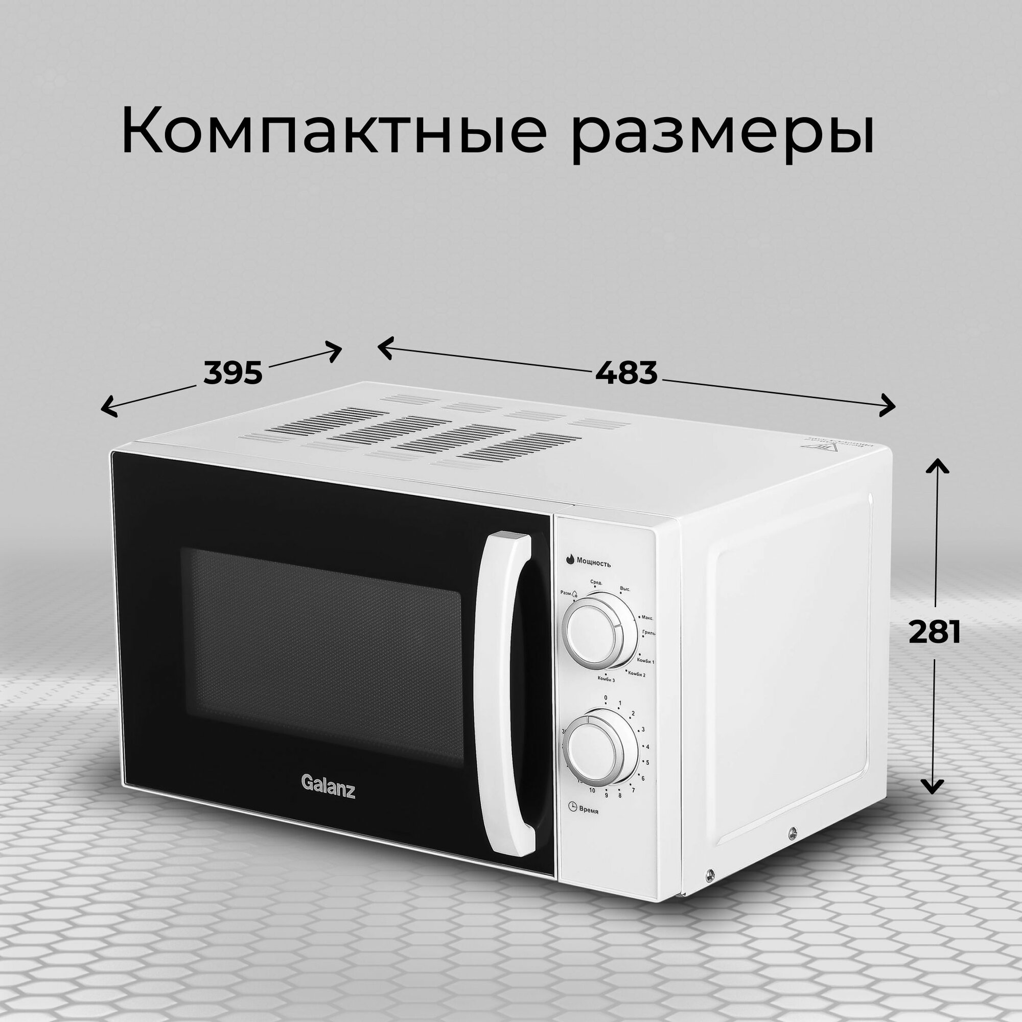 Микроволновая печь (СВЧ) Galanz MOG-2009MW белый, мощность 700Вт, объем 20л, покрытие камеры эмаль, механическое управление (220091): сравнение цен, характеристики, фото, актуальное наличие и цены.