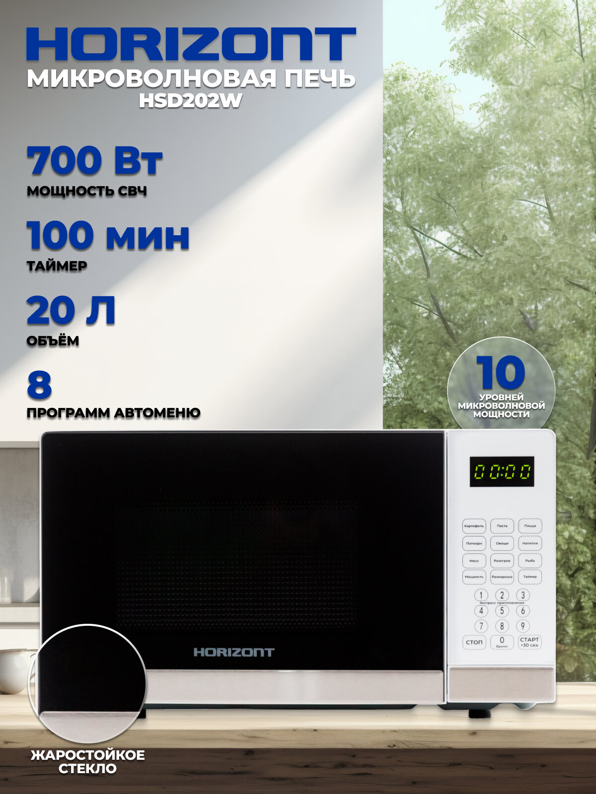 Микроволновая печь Horizont HSD202W, 700Вт, сенсорное управление, белый: сравнение цен, характеристики, фото, актуальное наличие и цены.