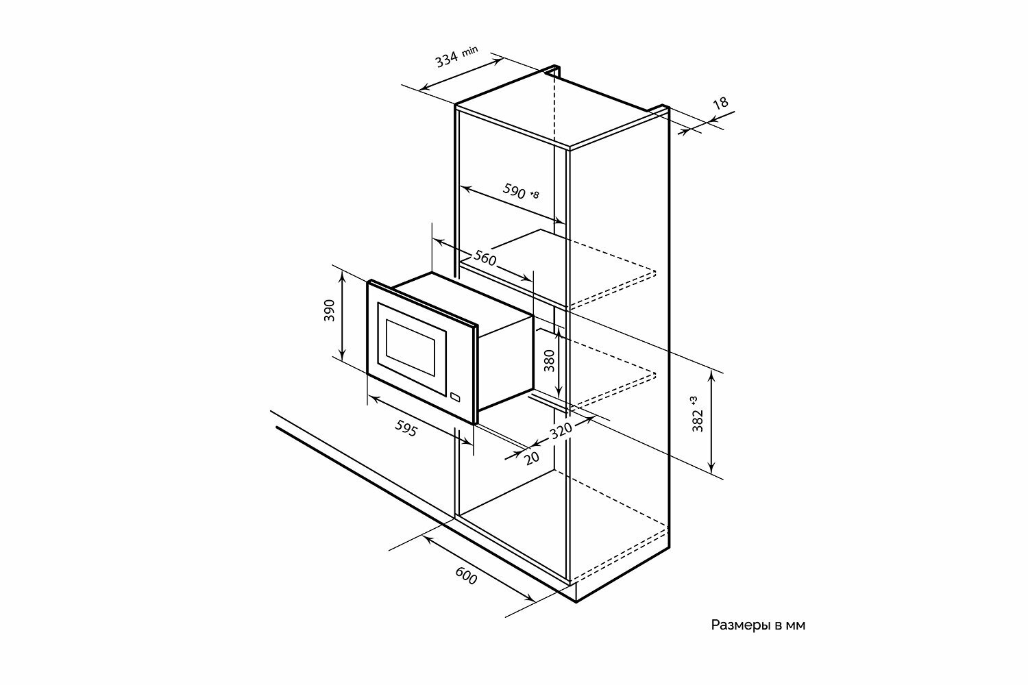 | Дополнительная информация | Размер ниши для встраивания 56,8х38,2х56 |