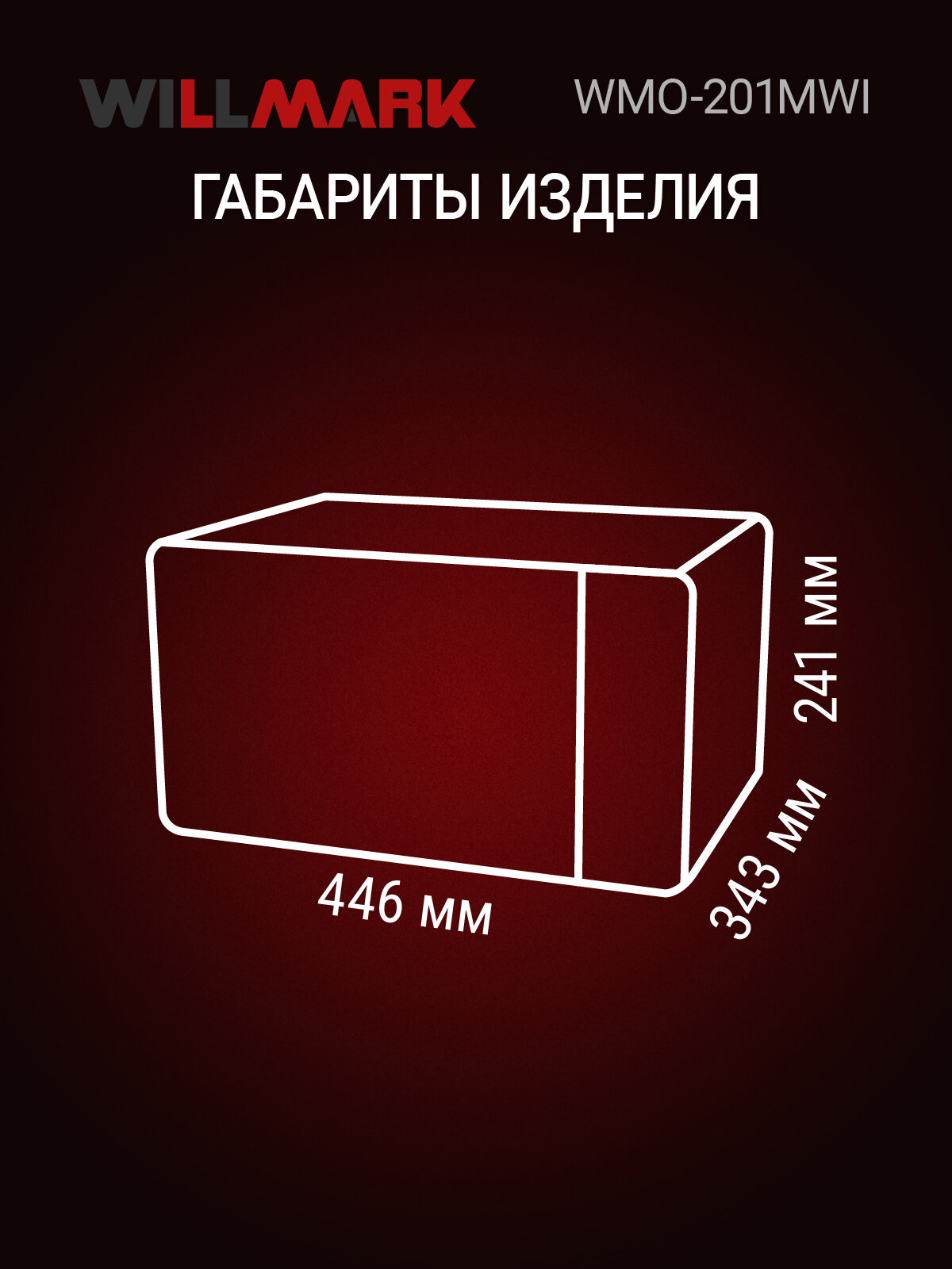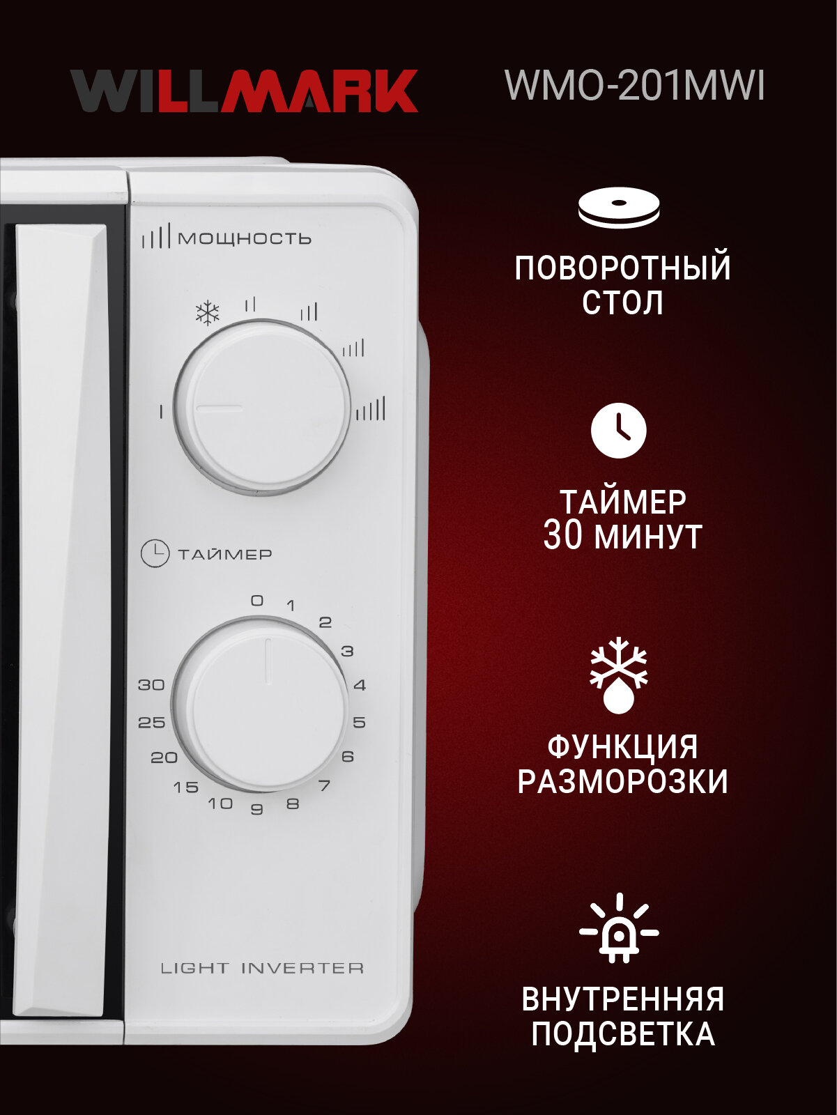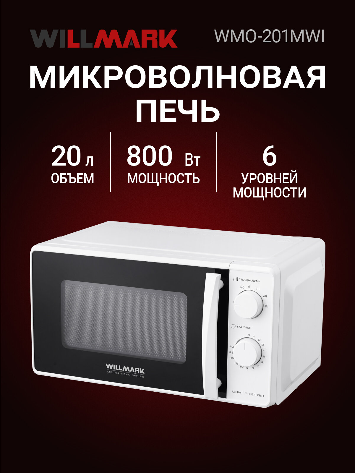 Микроволновая печь WILLMARK WMO-201MWI (20л,800Вт, LIGHT INVERTER,6 ур. мощ, размороз, механ. ПУ, белый): сравнение цен, характеристики, фото, актуальное наличие и цены.