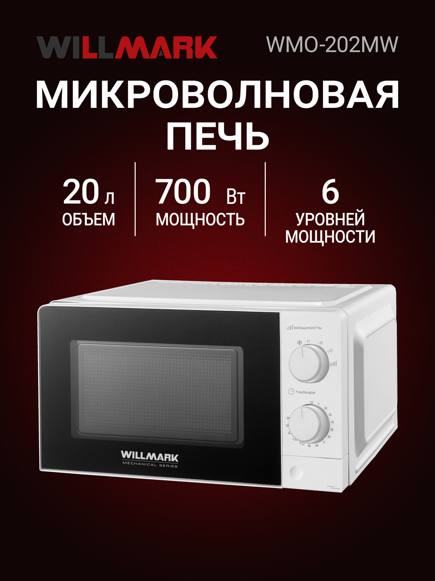 Микроволновая печь WILLMARK WMO-202MW (20л,700Вт, механич. ПУ, кнопка д/л откр. дверцы,6 ур. мощн, белая): сравнение цен, характеристики, фото, актуальное наличие и цены.