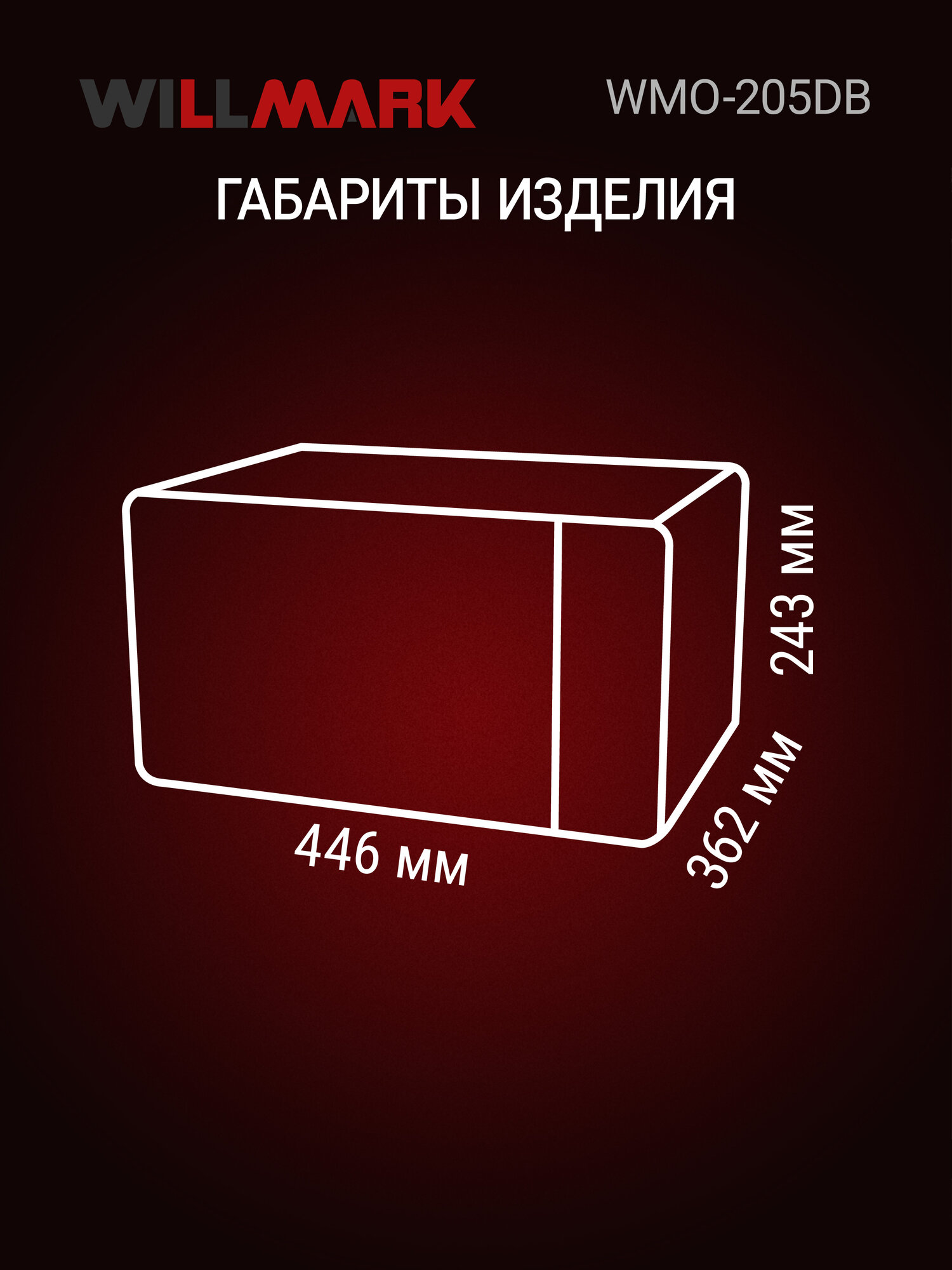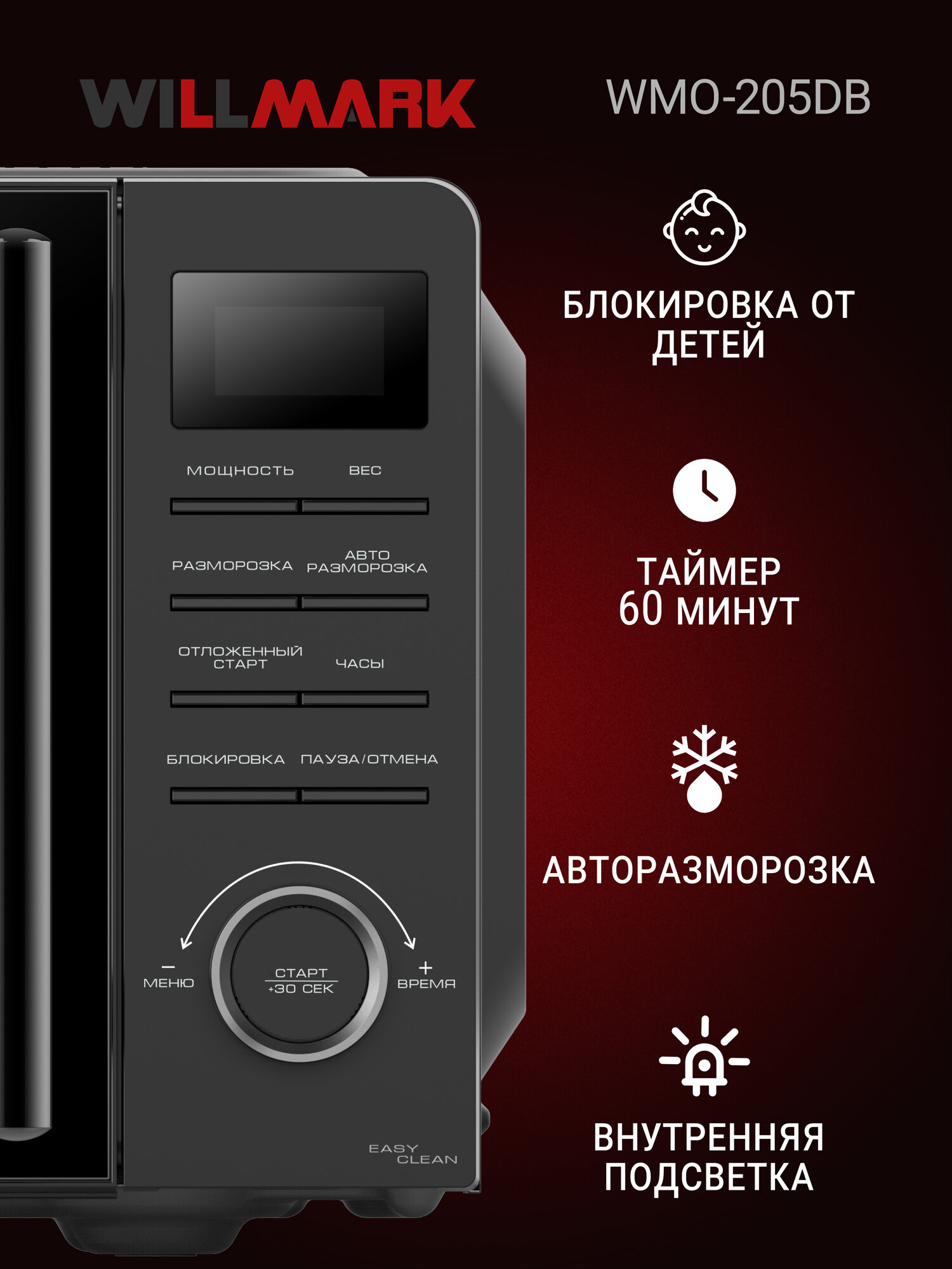 Микроволновая печь WILLMARK WMO-205DB (20л,700Вт, электр. ПУ, ручка д/л откр. дв,11 ур. мощн, черная): сравнение цен, характеристики, фото, актуальное наличие и цены.