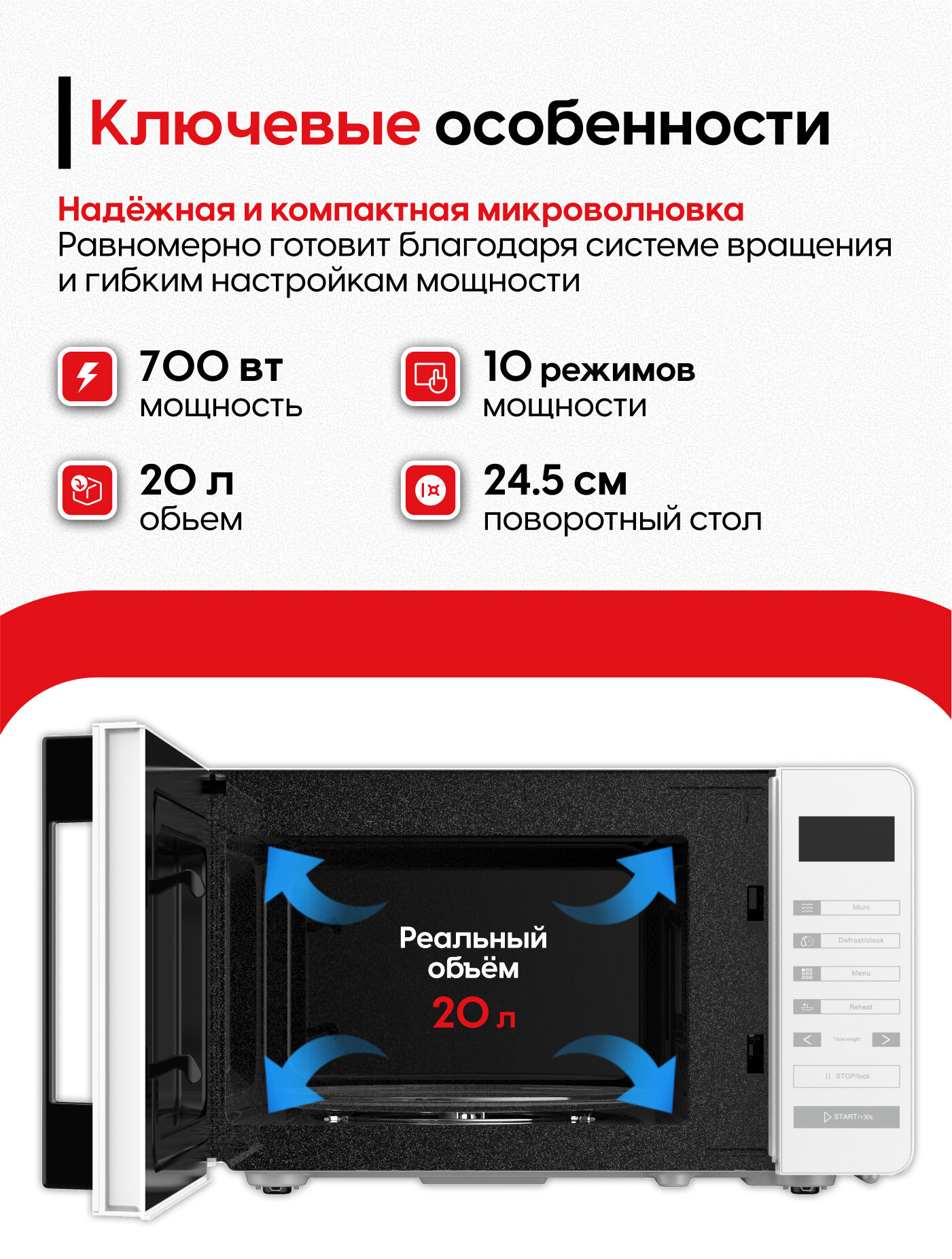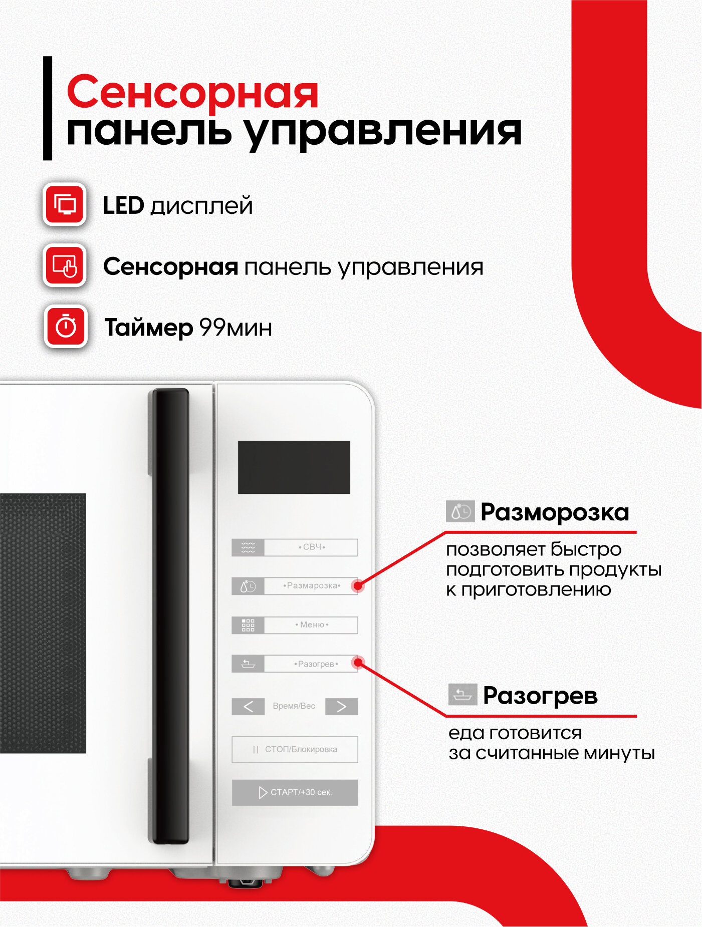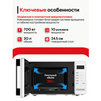 | Дополнительные режимы | автоматическая разморозка, автоматический разогрев, автоматическое приготовление, экспресс-режим приготовления |