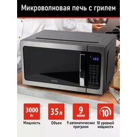 3000 Вт, 35л, Сенсорное управление и цифровой дисплей, Гриль, Решетка для гриля в комплекте, Регулировка мощности:10 уровней, 9 автоматических программ: картофель, спагетти, пицца, попкорн, овощи, напиток, мясо, рыба, разогрев.