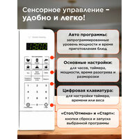 | Дополнительные режимы | автоматическая разморозка, автоматический разогрев, автоматическое приготовление, звуковой сигнал отключения |