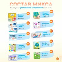 Микс набор пробников подгузников для новорожденных 0-8 кг, 30 шт в наборе, 10 брендов по 3 шт: сравнение цен, характеристики, фото, актуальное наличие и цены.