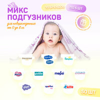 Купить Микс набор пробников подгузников для новорожденных 0-8 кг, 50 шт в наборе, 10 брендов по 5 шт с доставкой по всей России.