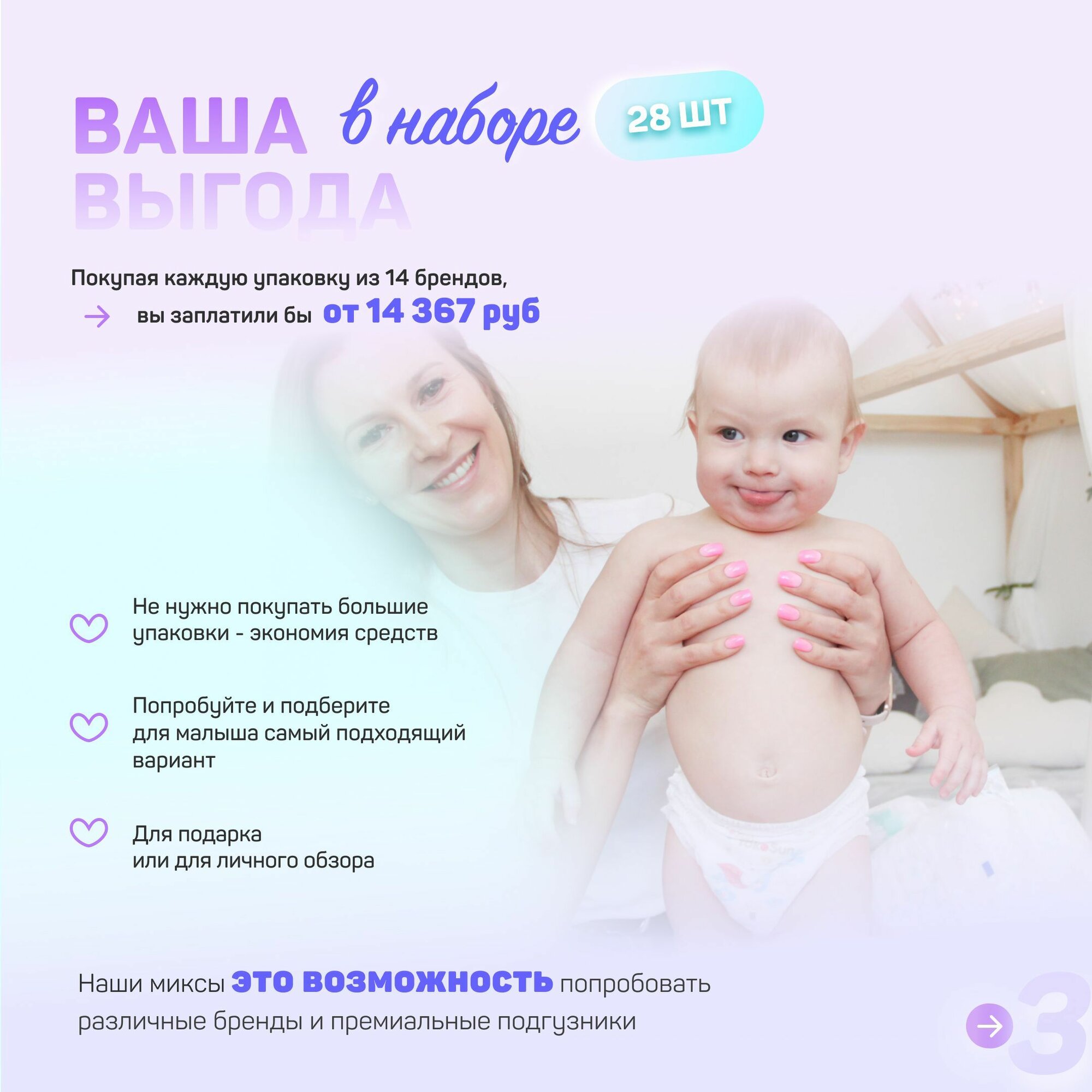 Микс набор пробников подгузников-трусиков 4-11 кг, 28 шт в наборе, 14 брендов по 2 шт: сравнение цен, характеристики, фото, актуальное наличие и цены.