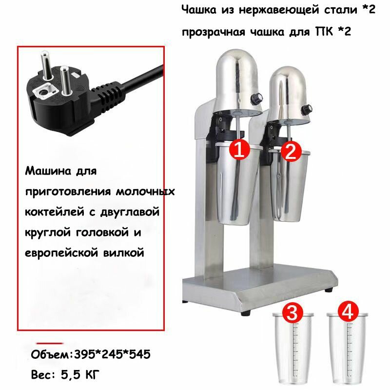 Купить Миксер для молочных коктейлей, Нержавеющая сталь, Двойная чашка, 180 Вт,800 мл, регулировка скорости на 2 передачи с доставкой по всей России.