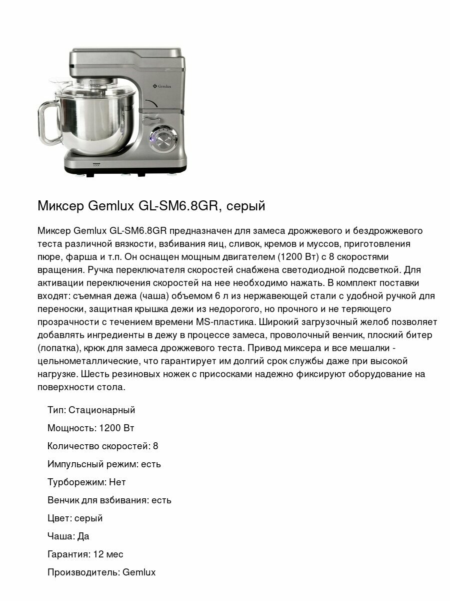 Купить Миксер Gemlux GL-SM6.8GR, серый с доставкой по всей России.