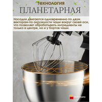 Вращающаяся чаша отсутствует, но есть планетарный механизм, который обеспечивает равномерное смешивание ингредиентов по всей чаше.