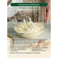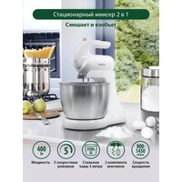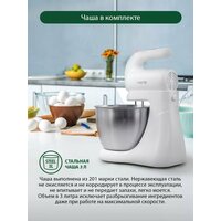Миксер с чашей 3 л, 400W, металлическая чаша с вращением объемом 3 л, 5 скоростных режимов, Турбо режим, кнопка извлечения насадок, 2 комплекта насадок: для замеса теста, для взбивания яиц/крема Благодаря устойчивой и надежной конструкции миксер окажется незаменимым помощником на кухне. Подходит для смешивания жидкостей, взбивания яиц или крема, приготовления пюре. 5 скоростных режимов позволят выбрать оптимальную скорость вращения насадок для любого продукта. Конструкция позволяет использовать его в том числе в качестве ручного, что очень удобно. Кнопка извлечения насадок упрощает уход после окончания работы. Прибор равномерно взбивает продукты, насыщает их кислородом: взбитая масса получается пышной и нежной. Прибор компактный и бесшумный, отвечает наивысшим стандартам качества и безопасности. Техника для кухни легко впишется в дизайн любой кухни, не занимая много места, но при этом оставаясь всегда под рукой. Девайсы для кухни – ручной механический для смузи – необычайно полезный прибор для вкусного и здорового питания. Измельчение и смешивание с помощью миксер с насадками для дачи. Гаджет для приготовления вкусной и здоровой пищи, шейкер для коктейлей. Кухонный прибор для домашних заготовок. Не планетарный взбиватель для соусов.