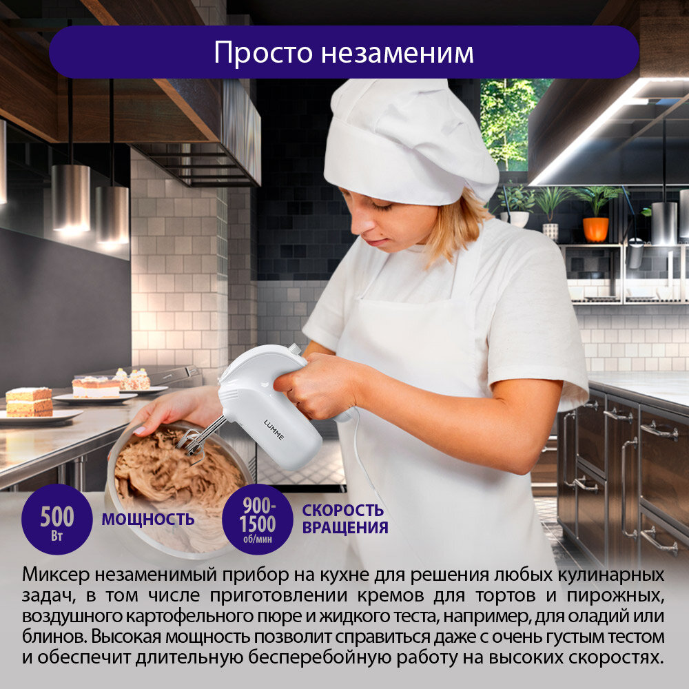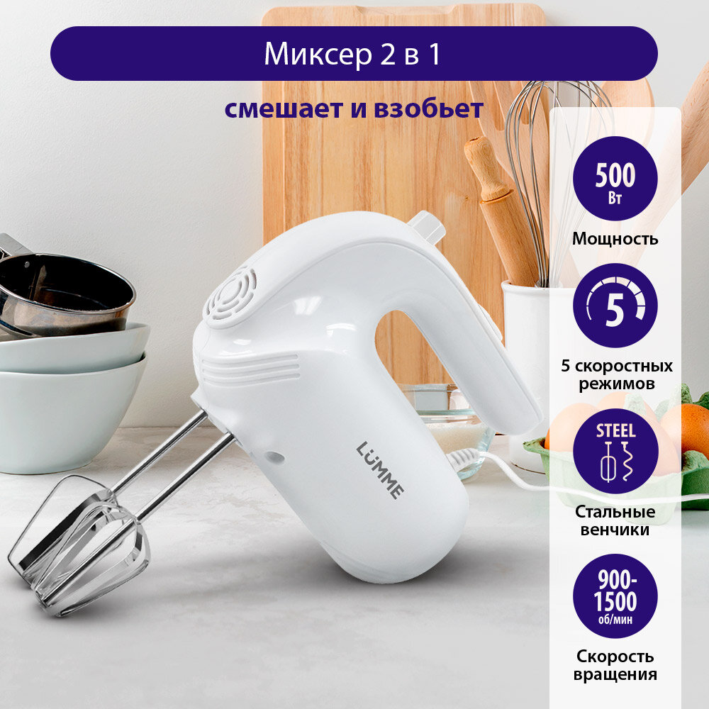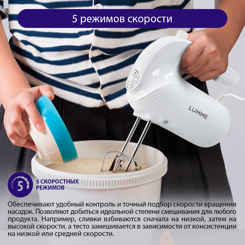 Купить Миксер LUMME LU-MX1871A, ручной, 5 скоростей, пластик, белый с доставкой по всей России.