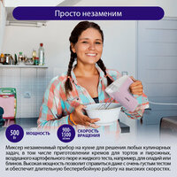 Миксер легко впишется в дизайн любой кухни, не занимая много места, но при этом оставаясь всегда под рукой. 500W 5 скоростных режимов, кнопка извлечения насадок, насадки для взбивания яиц/крема в комплекте