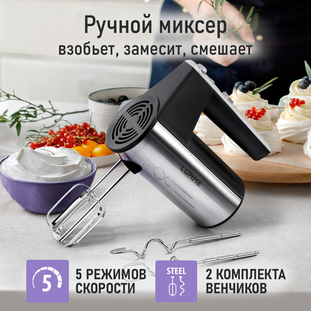 Купить Миксер Lumme LU-MX1876A, ручной, черный, нержавеющая сталь, мощность 800 Вт с доставкой по всей России.