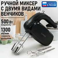 Миксер ручной без чаши, 500W, 5 скоростных режимов, кнопка извлечения насадок, насадки для взбивания яиц/крема в комплекте Мощность 500 Вт - (максимальная мощность мотора при блокировке двигателя). Работает от сети 220 - 230 Вольт, 50 Герц, управление механическое, кнопка извлечения насадок, длина сетевого шнура 1,05 м. С 2 комплектами насадок подходит для смешивания жидкостей, взбивания яиц или крема, приготовления пюре и замешивания теста. Удобен и прост в использовании, имеет эргономичный дизайн корпуса, выполненного из высококачественного пластика. 5 скоростных режимов позволят выбрать оптимальную скорость вращения насадок для любого продукта. Кнопка извлечения насадок упрощает уход после окончания работы. Легко впишется в дизайн любой кухни, не занимая много места, но при этом оставаясь всегда под рукой. Минимиксер без чаши, а так же без брызг, блендерамиксера, тестомес, электромиксер для молочных коктейлей. Приготовление блюд с использованием кухонная техника Lumme сделает ваши рецепты вкусными и полезными! Необычайно полезный прибор для вкусного и здорового питания. Измельчение и смешивание с помощью миксера с насадками для дачи, не блендер стационарный мощный удобный гаджет для приготовления вкусной и здоровой пищи, шейкер для коктейлей. Кухонный прибор для домашних заготовок, для крема. Не планетарный Взбиватель для соусов, для детского питания