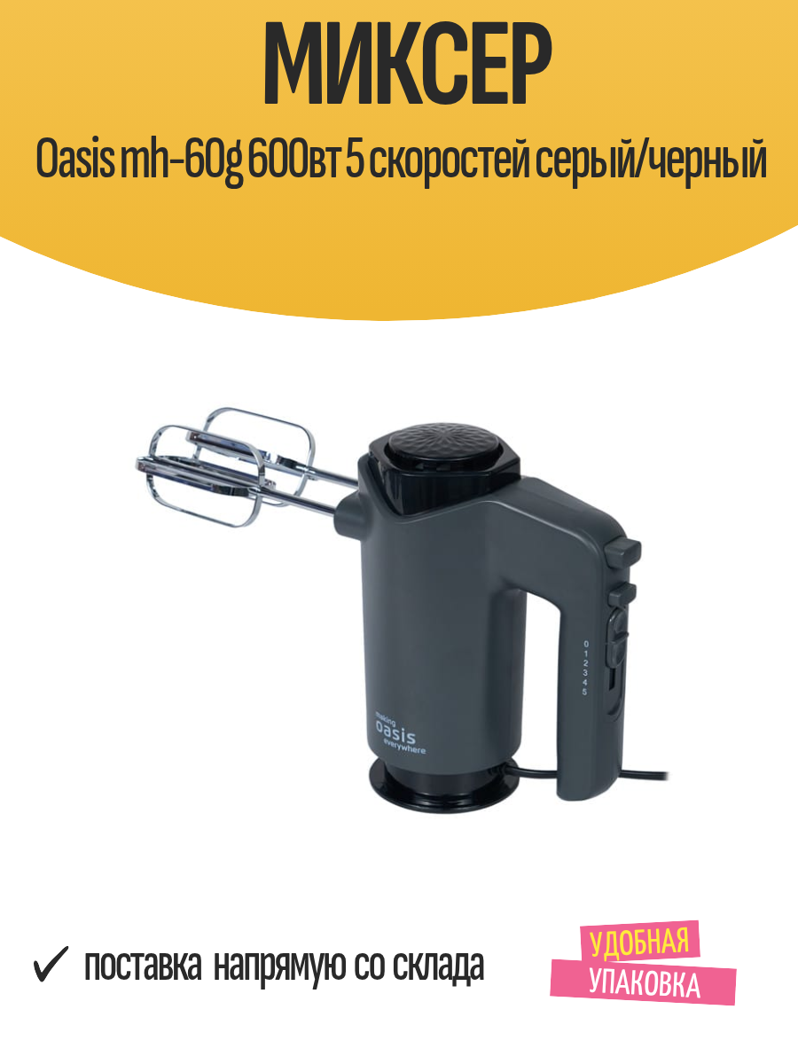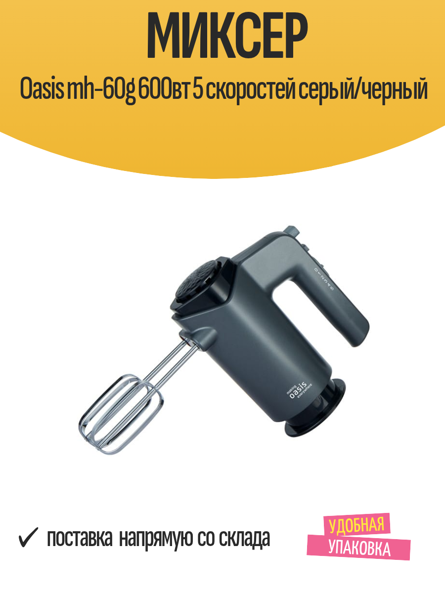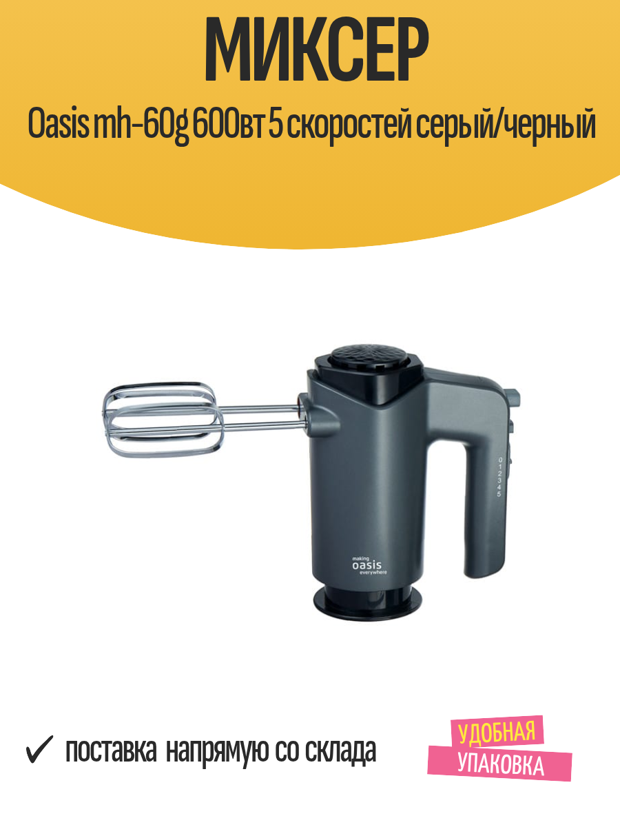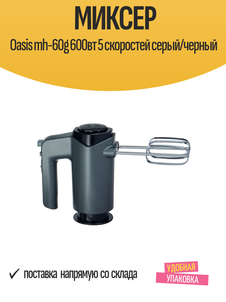 Купить Миксер Oasis mh-60g 600вт 5 скоростей серый/черный с доставкой по всей России.