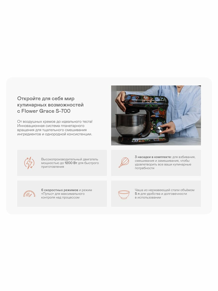 Купить Миксер планетарный GARLYN Flower Grace S-700 Гарлин с доставкой по всей России. Миксер планетарный GARLYN Flower Grace S-700 Гарлин: сравнение цен, характеристики, фото, актуальное наличие и цены.