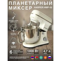 Купить Планетарный миксер кухонный электрический HARPER HMP-02, с чашей, 6 скоростей + импульсный режим, белый с доставкой по всей России.