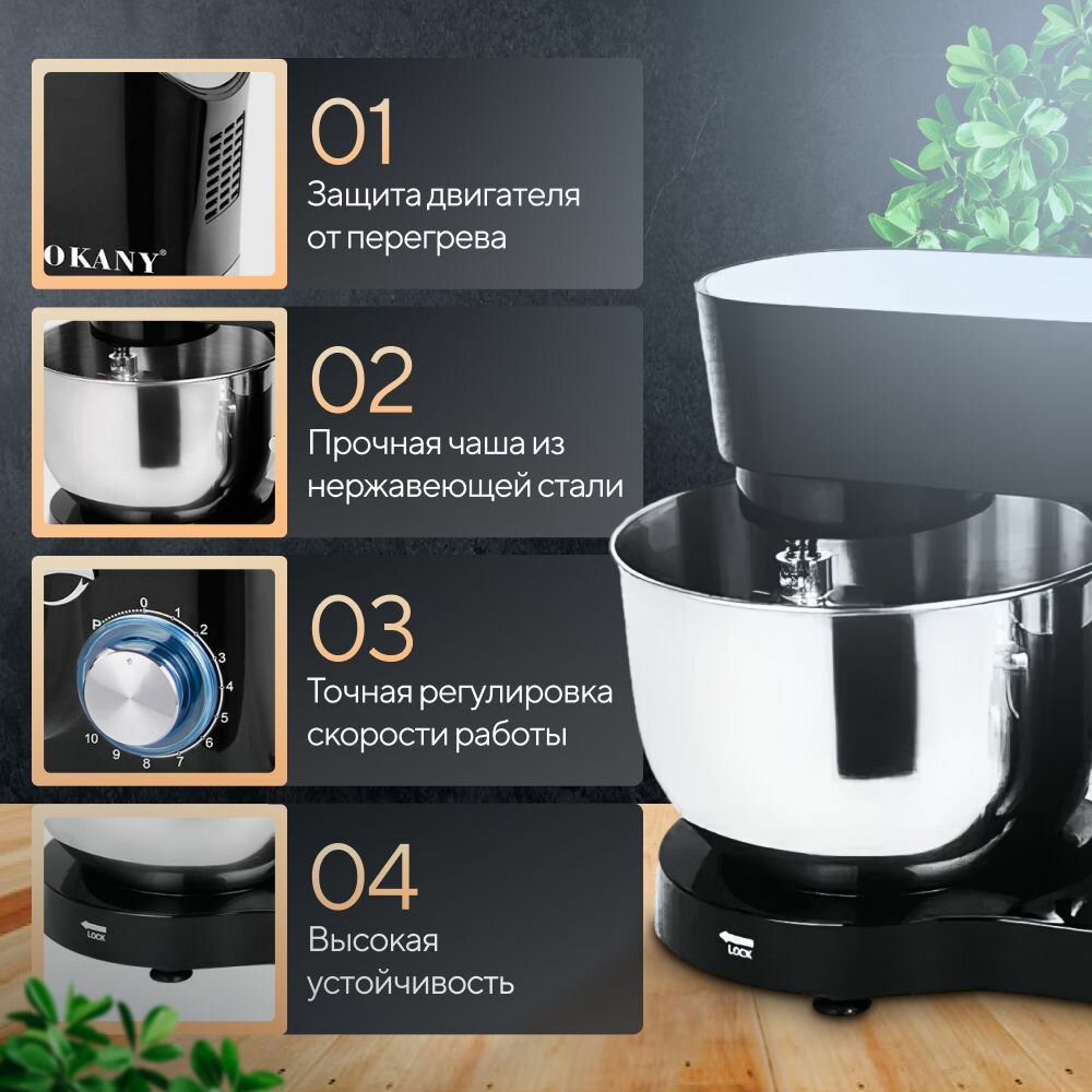 венчик для взбивания, крючки для замешивания теста, насадка для приготовления пюре