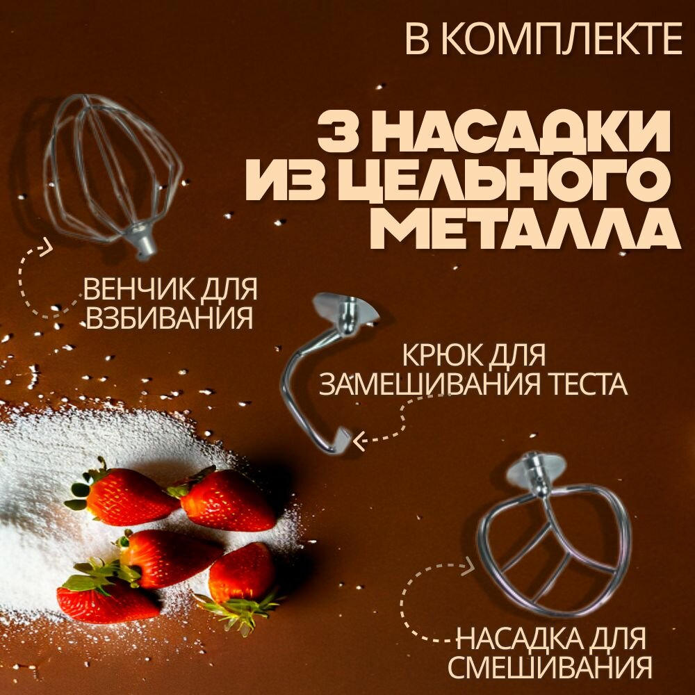 Купить Миксер Hoffmans, планетарный, стационарный, нержавеющая сталь, 2000Вт, 6 скоростей с доставкой по всей России.