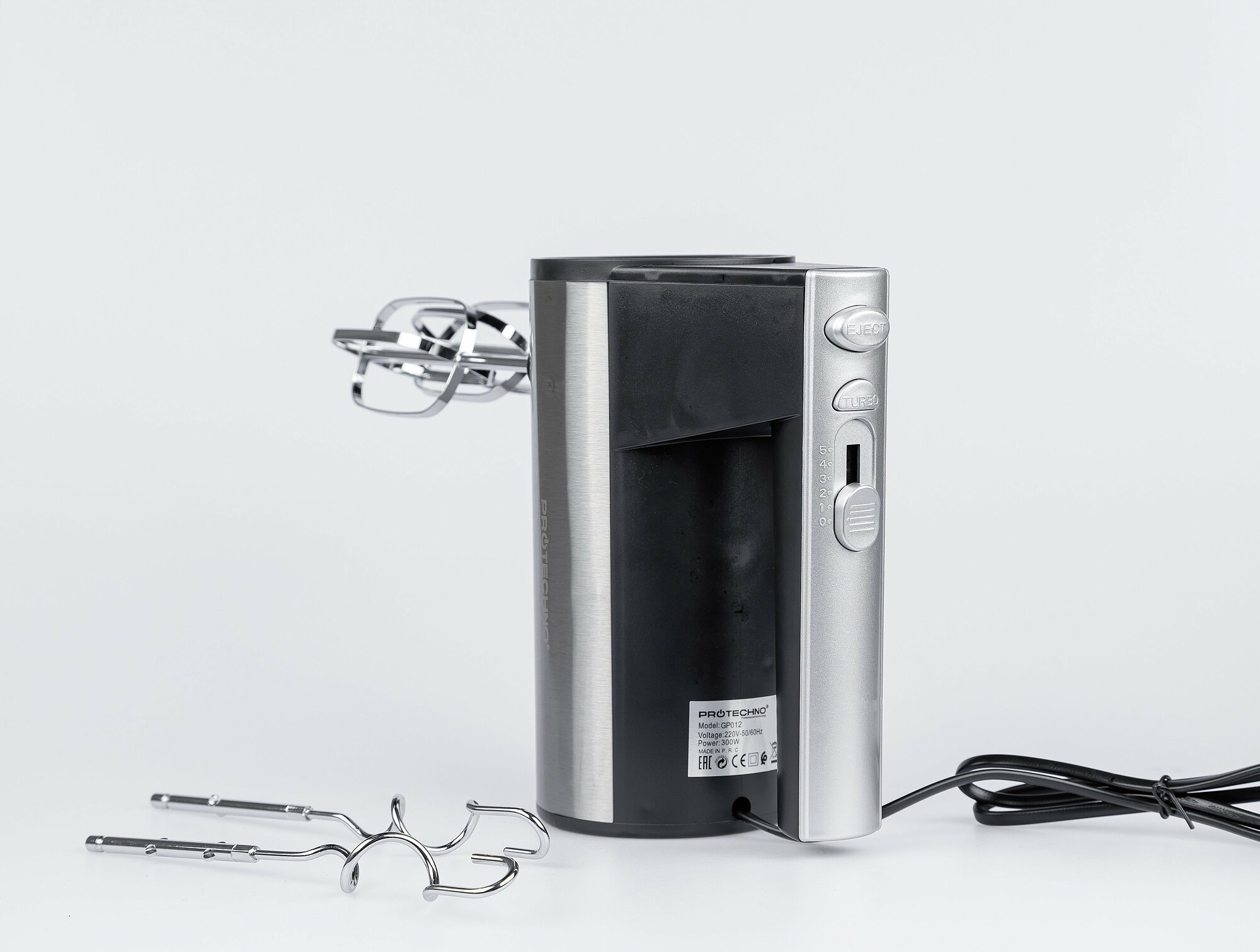 Миксер Protechno GP012, ручной, 300 Вт, 5 скоростных режимов, 2 насадки