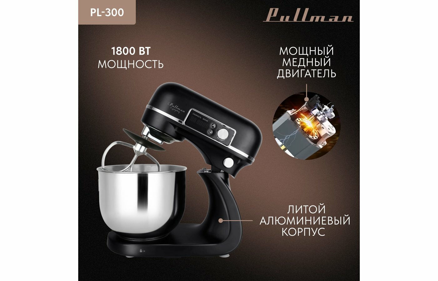 Миксер Pullman PL-300, металлический корпус, нержавеющая сталь, 1800Вт, 6л: сравнение цен, характеристики, фото, актуальное наличие и цены.