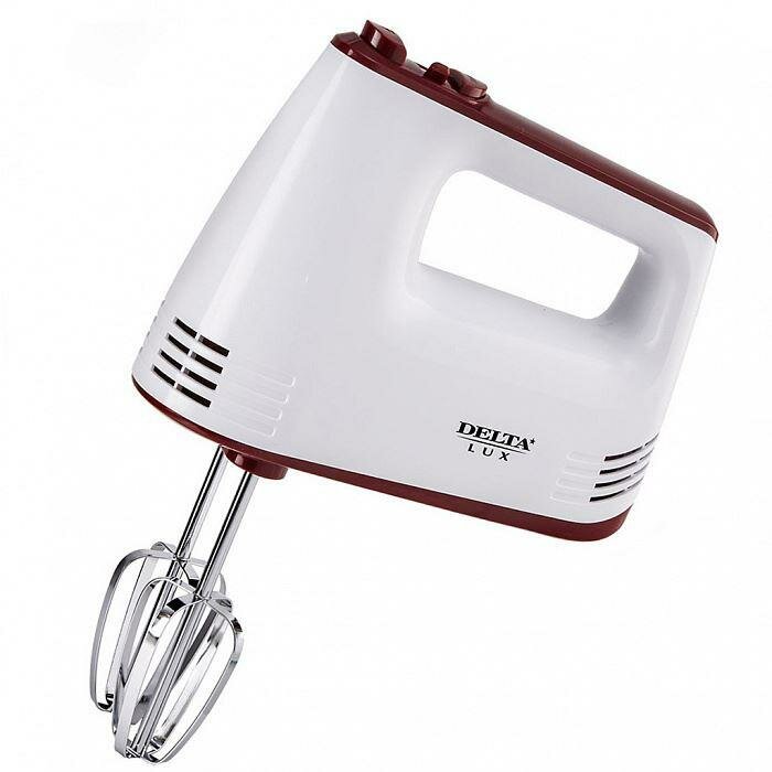 Миксер ручной Delta Lux DE-7700, 400Вт, 5 скоростей + турбо, 4 насадки, белый с бордовым: сравнение цен, характеристики, фото, актуальное наличие и цены.