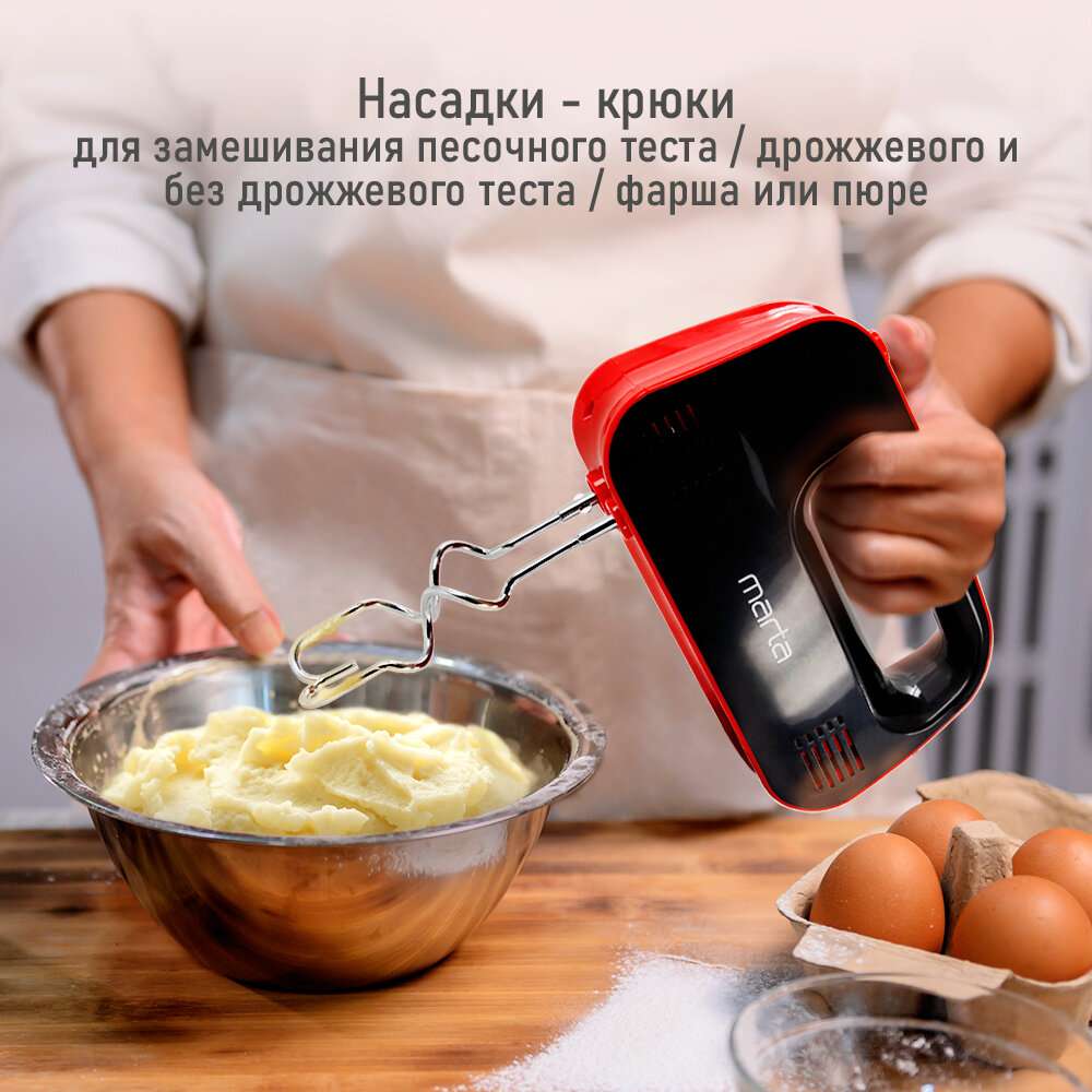 Миксер ручной MARTA MT-MX1524A, мощность 500Вт, 3 скорости, 4 насадки, темный рубин: сравнение цен, характеристики, фото, актуальное наличие и цены.