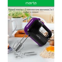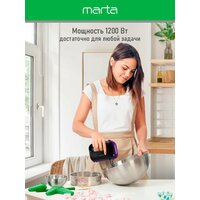 Купить Миксер MARTA MT-MX1525A, мощность 1200Вт, 3 режима, пластик, черный/фиолетовый с доставкой по всей России.