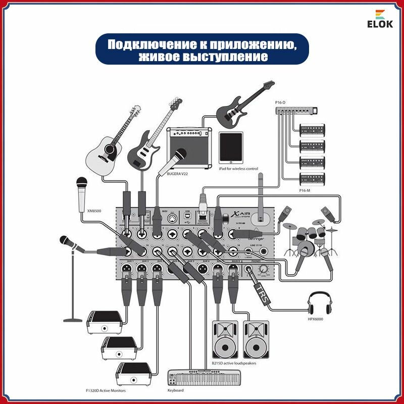 | Функции | аудиоинтерфейс, беспроводное подключение, встроенный процессор эффектов, встроенный рекордер, вход Hi-Z, компрессор, параметрический эквалайзер, ползунковые фейдеры, установка в рэк, фантомное питание, эквалайзер |