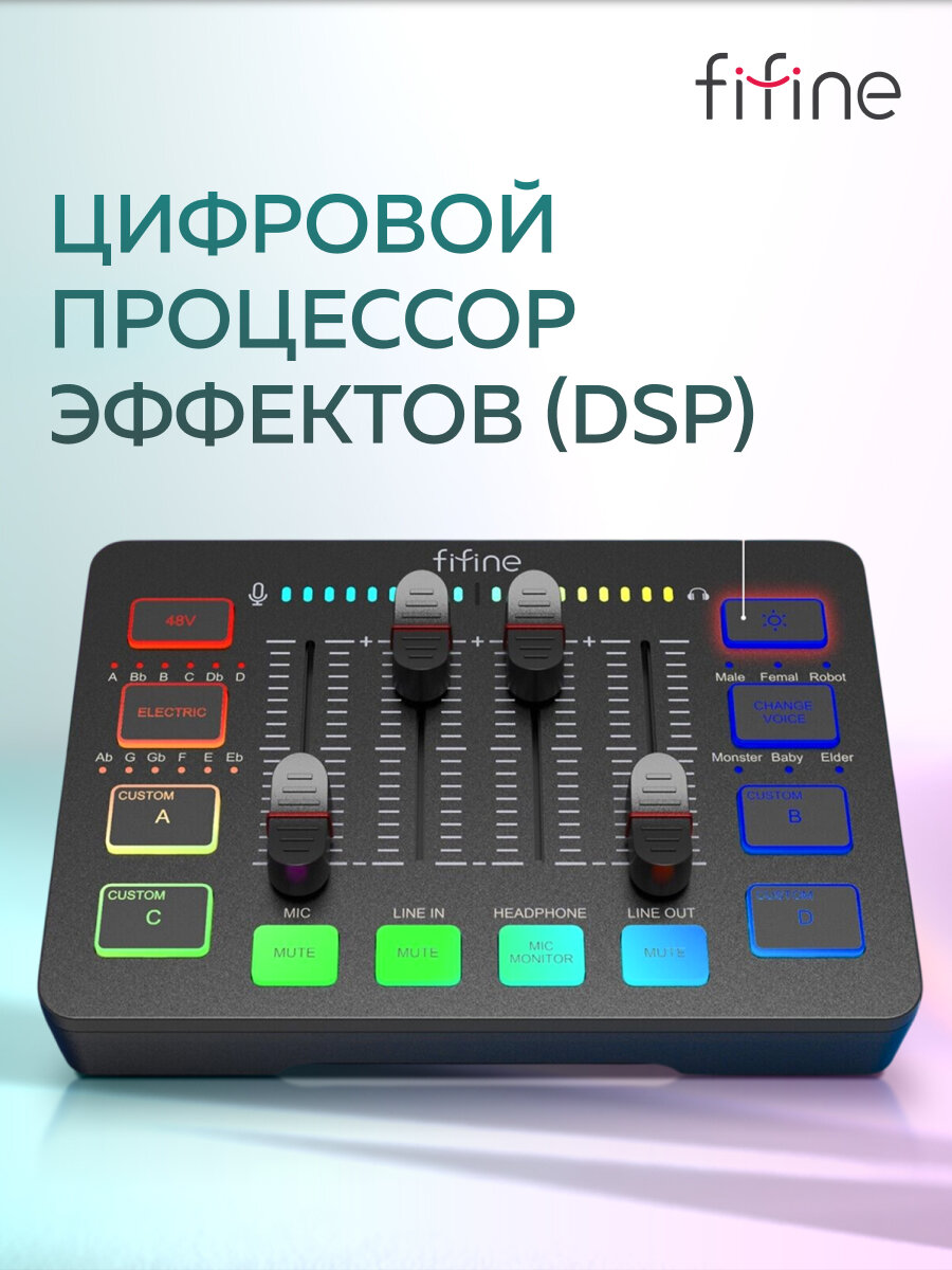 Купить Микшер / Звуковая карта Fifine mixer SC3 (Black) / звуковые эффекты / RGB подсветка с доставкой по всей России.