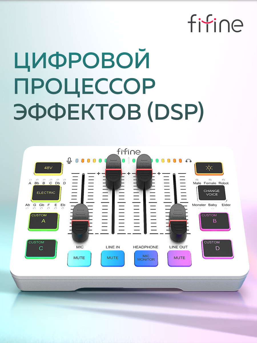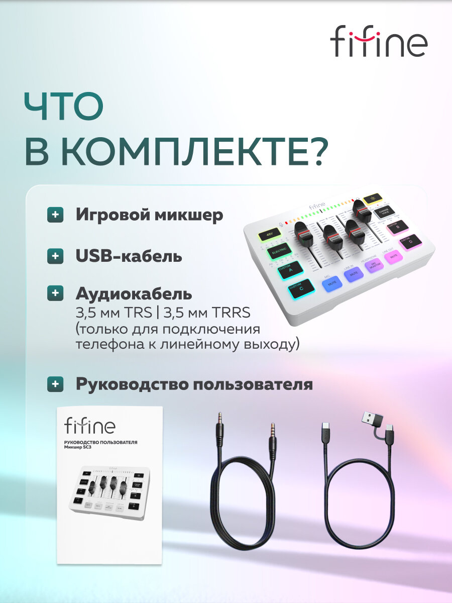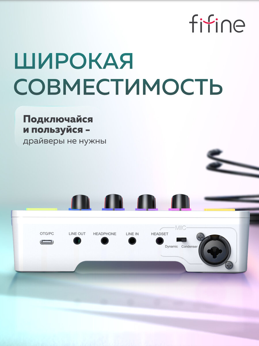 Купить Микшер / Звуковая карта Fifine mixer SC3 (White) / звуковые эффекты / RGB подсветка с доставкой по всей России.