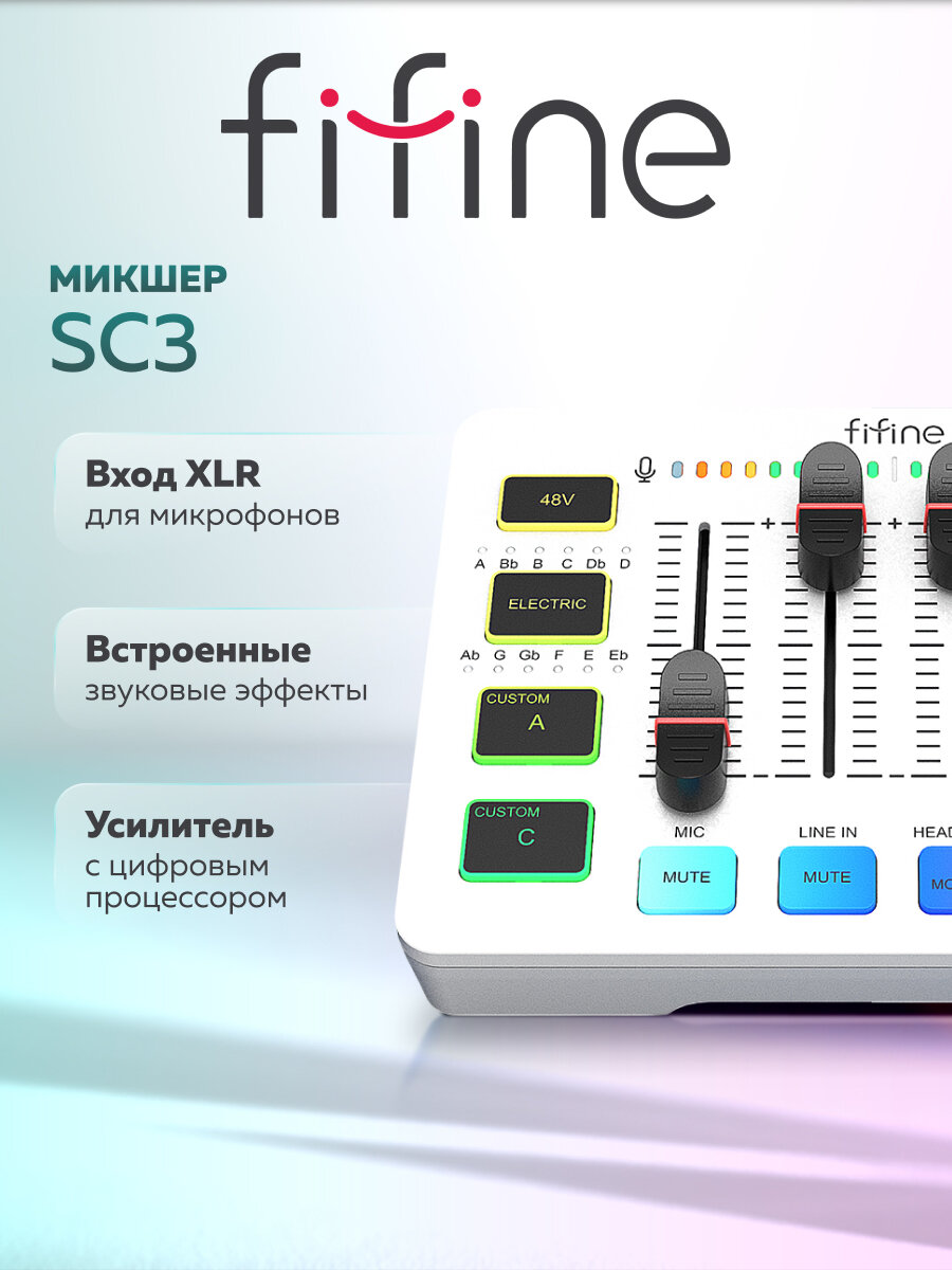 Микшер / Звуковая карта Fifine mixer SC3 (White) / звуковые эффекты / RGB подсветка: сравнение цен, характеристики, фото, актуальное наличие и цены.