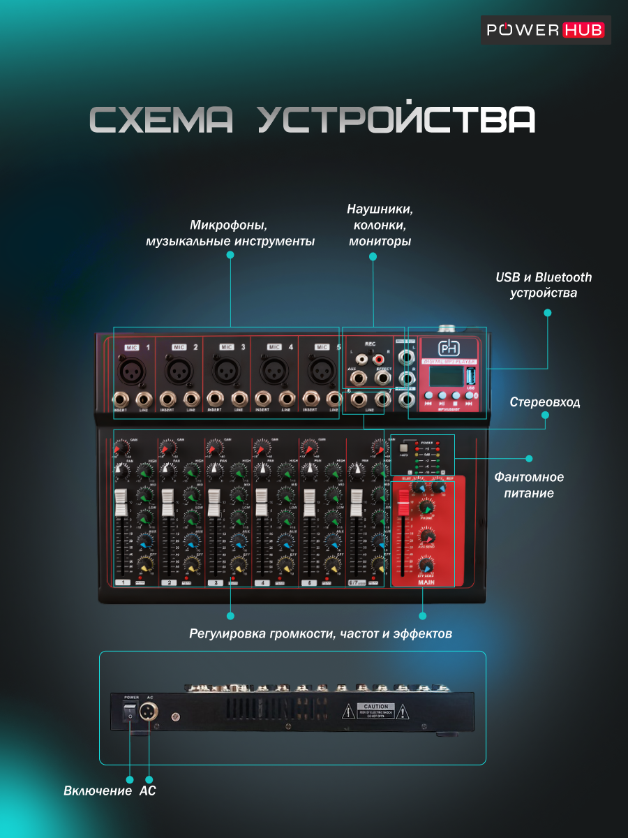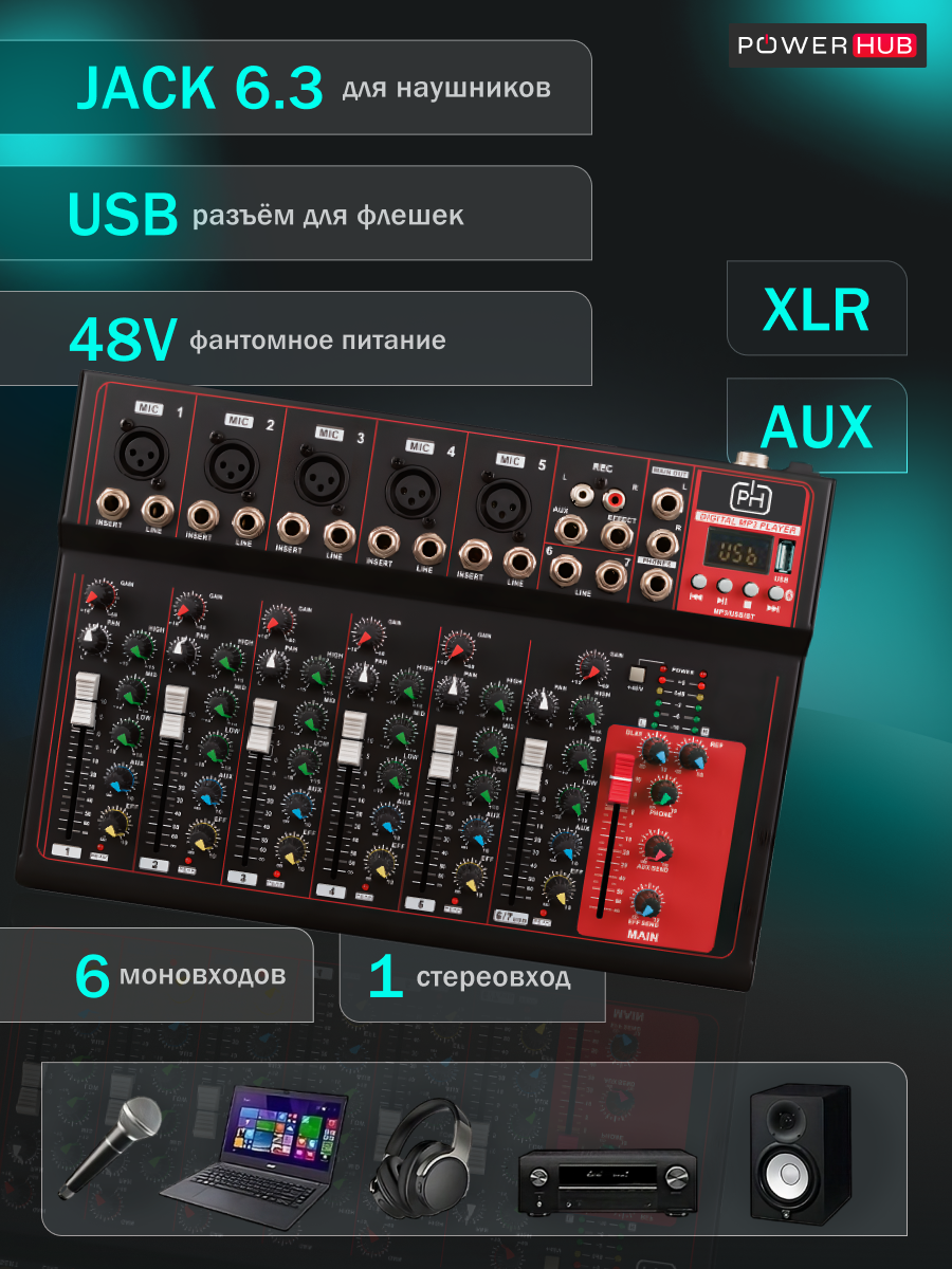 Купить Микшерный пульт 7-канальный POWERHUB, диджейский пульт, микшер 7 каналов c Bluetooth и AUX с доставкой по всей России. Микшерный пульт 7-канальный POWERHUB, диджейский пульт, микшер 7 каналов c Bluetooth и AUX: сравнение цен, характеристики, фото, актуальное наличие и цены.